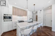 Welcome to the "Esquire" in Calgary’s vibrant University District, just steps from U of C, Market Mall, Foothills Hospital, and C-Train access. This stylish "like new" one-bedroom condo offers both modern finishes and unbeatable convenience, perfect for students, professionals, or downsizers alike. Inside, you’ll find a bright open layout with a pearl-white palette, Quartz counters, soft-close cabinetry, luxury vinyl plank flooring, and in-suite laundry. The kitchen is thoughtfully designed with a roomy island, upgraded appliances including a gas stove, garburator, Silgranit sink, and elegant fixtures. The primary bedroom includes a walk-in closet, while the living room opens directly onto your private patio—complete with a gas BBQ hookup. Being on the main floor makes it ideal for pet owners, offering both comfort and easy outdoor access. As an end unit, you’ll enjoy extra privacy and a quiet setting, enhancing the home’s peaceful feel. The Esquire also includes a wealth of amenities: heated underground parking, storage locker, bike storage, fitness center, pet spa, and even a bike workshop. This is a fantastic opportunity to live in one of Calgary’s most sought-after, walkable communities with shopping, dining, parks, and pathways right at your doorstep. (id:6769)