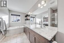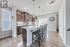 Charm meets convenience in this well-maintained two-storey detached home in Mahogany, offering nearly 1,700 sq. ft above-grade space. In this award-winning 4-Season lake community, residents enjoy exclusive access to 63 acres of water, private beaches, a kids' splash park, 22km of pathway & 74 acres of restored wetlands. Inside, a bright foyer with a convenient front closet and very discreet powder room leads into the open-concept main floor. This sought-after central kitchen design offers stainless steel appliances, a central island with bar seating, granite countertops, a tiled backsplash, ample cabinetry, and generous prep space. A cozy, carpeted den, just off the dining area, complete with large windows and built-in shelving, creates a versatile space for a home office, with enough room for both partners to work from home or use it as a playroom, study nook, or reading spot. The living area is filled with natural light thanks to the oversized windows and features a gas fireplace framed with tile and custom wood detailing. The large mud room is perfect for kids loading and unloading from the oversize deck and garage. This home also includes central A/C for year-round comfort. Upstairs, the primary suite offers a peaceful retreat with a large walk-in closet and a spa-inspired 5-piece ensuite featuring dual sinks with granite countertops, a soaker tub, and a tiled walk-in shower. Two additional bedrooms, a 4-piece bathroom, and a dedicated laundry room with storage space for cleaning supplies complete the upper level. The fully custom-designed and developed basement adds even more living space, including a spacious rec room with a cozy fireplace, an extended wet bar with quartz counters and a brand-new full-size fridge, a comfortable 4th bedroom, and a modern 3-piece bathroom. This $40,000 development also included ceiling sound bars for enhanced sound mitigation. The basement is fully insulated and features abundant storage, including large storage rooms ideal for seasonal items, gear, and household extras. Outside, enjoy an amazing backyard on the street's largest lot, with no neighbours behind you, featuring a large deck, a storage shed, plenty of space to relax, play, or garden, and a nearly 550 sq. ft. double detached garage offering insulated, heated parking and additional storage. The garage is oversized with a valued section perfect for bikes, tools, or game meat. The paved back lane keeps vehicles and garage floors cleaner year-round. The exterior also features Gemstone lights for customizable seasonal lighting. Set in Mahogany, one of Calgary’s most desirable lake communities, this home is close to parks, pathways, shops, dining, and year-round recreation. This is a perfect opportunity to own a warm, welcoming home in a vibrant neighbourhood. (id:6769)