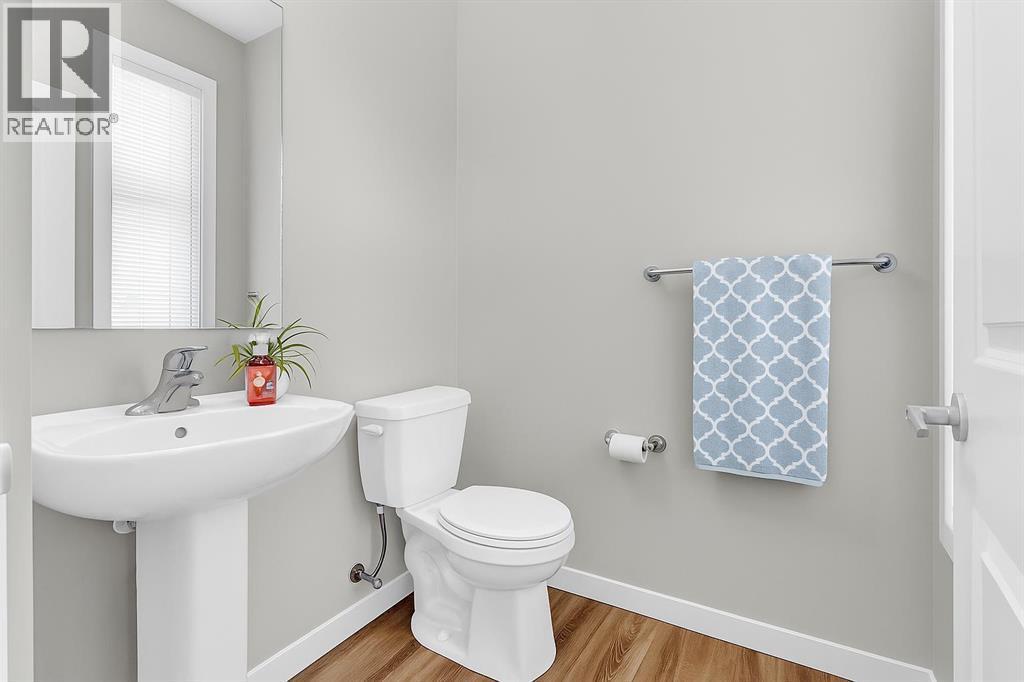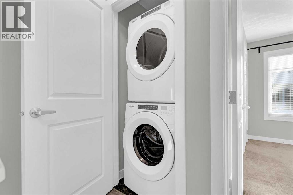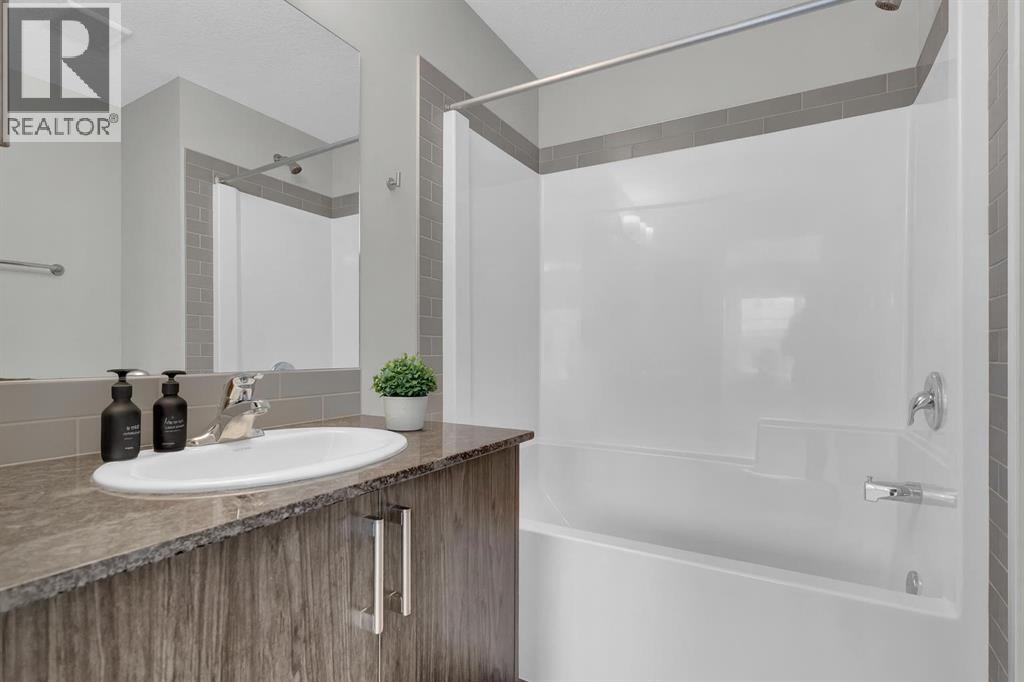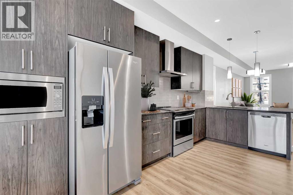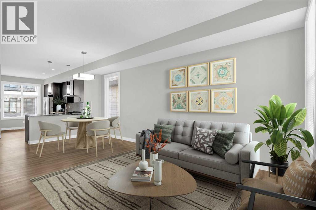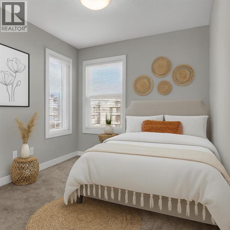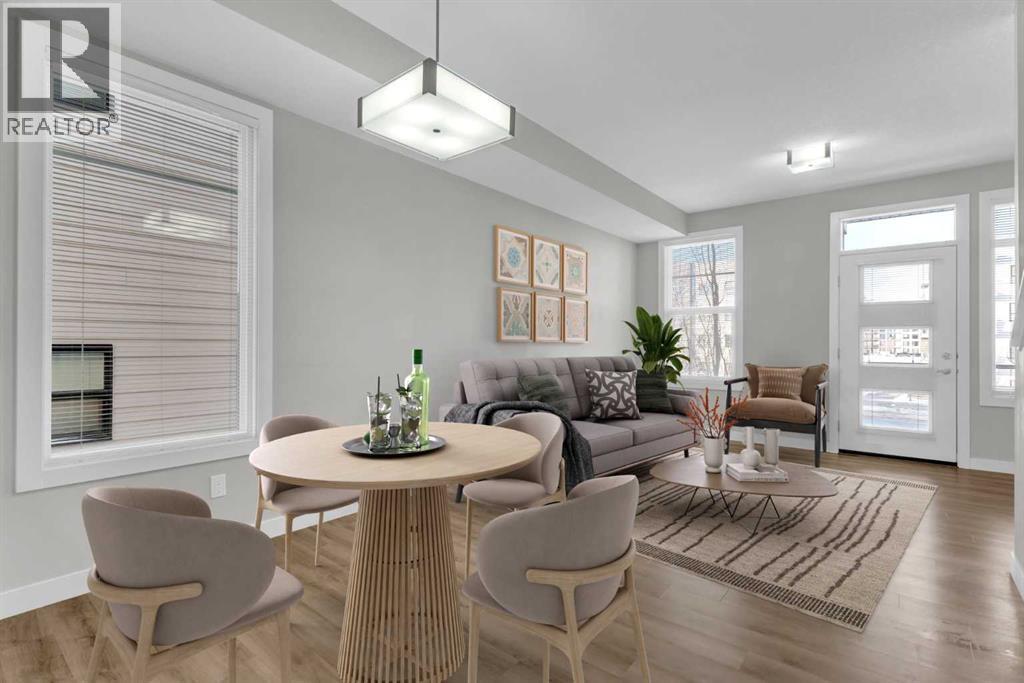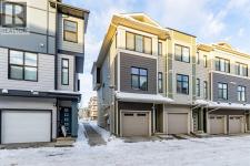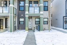 END UNIT townhome with 3 BEDROOMS | 2.5 BATHS | DOUBLE ATTACHED TANDEM GARAGE | CENTRAL A/C | TONS OF HIGH END BUILDER UPGRADES | beautifully built by Trico Homes in Calgary’s urban district SETON! Combining functionality with modern luxury, be impressed the moment you set foot the open concept main floor with natural light illuminating through the many oversized windows at every turn, you can only find in an end unit. This flows perfectly into the exquisite kitchen boasting full height cabinets, stainless steel appliances with built-in microwave, quartz countertop and flush eating bar. It seamlessly blends into the cozy dining area and spacious a living room that leads to a balcony ready for BBQs. Main floor also features 9 ft ceiling height, knockdown texture, vinyl flooring that is durable and easy to clean. A half bathroom completes this level. The upper floor offers 3 generously sized bedrooms with the master suite featuring a large walk-in closet and full ensuite. Convenient laundry is also located on the upper floor. Parking will never be a problem, thanks to the double attached tandem garage that is perfect for keeping your car warm with lots of space for storage and a utility room. This unit also has plenty of street parking and close distance to visitors parking. Maintenance-free living in a well managed complex with low condo fee. This property is strategically located within walking distance to YMCA , The South Health Campus hospital, public library, JCS High School, Cineplex Cinema, banks, grocery stores, restaurants, bars, and a huge green space! Book your showing today and don’t miss out on the opportunity to own this beautifully upgraded end unit townhome! Some photos have been virtually staged to help visualize the space ** 3D VIRTUAL TOUR AVAILABLE** (id:6769)