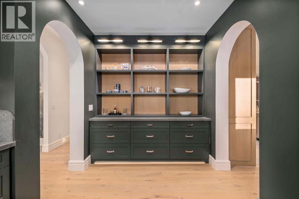 ***OPEN HOUSE SATURDAY DEC 6th 12pm-3pm*** Welcome to this exceptional custom residence on prestigious Toronto Crescent in highly sought-after St. Andrews Heights. Perfectly positioned on an expansive 9,000 sq. ft. lot, this meticulously designed home offers over 6,000 sq. ft. of developed luxury living, crafted by Maxime Chin Designs with uncompromising detail and style. This remarkable property features an 80’ wide backyard, walkout basement, 63’ full-width balcony, attached triple garage, 5 bedrooms, 5.5 bathrooms, 4 gas fireplaces, bonus room with balcony, butler’s pantry, dedicated office, home gym, Sub-Zero/Wolf appliance package, designer lighting, and so much more. Enter through the grand foyer and be welcomed by soaring 10’ ceilings and expansive sight-lines. To the side, the inviting living room showcases beautiful built-ins and an oversized gas fireplace. LUX accordion doors open seamlessly to the massive covered balcony—complete with an outdoor fireplace—creating an exceptional indoor/outdoor living experience. The stunning kitchen features custom oak cabinetry, exquisite quartz surfaces, a 48” Wolf gas range, Sub-Zero refrigerator, and a spacious butler’s pantry with sink, dishwasher, and convenient shelving. The formal dining room is wrapped in bespoke wallpaper that extends to the limewash ceiling and includes a stunning bar area with direct access to the balcony. A private office, stylish powder room, and a well-appointed mudroom with built-in lockers complete the main floor. The luxurious primary suite features a beautiful arched window offering a glimpse of the downtown Calgary skyline. The spa-inspired 5-piece ensuite includes a freestanding reeded tub, large walk-in steam shower, marble backsplash & dual vanity. Also a spacious walk-in closet outfitted with custom built cabinetry rounds out the suite. The builder has left the primary room as a blank canvas and will work with the new homeowners to create a custom oasis. Three additional bedrooms ( two with ensuites), a full main bath, and a laundry room with two sets of washers and dryers offer convenience and comfort. A spectacular bonus room crowns the upper level with 12’ ceilings, a gas fireplace, private balcony, built-in bar, and a dedicated homework station. The basement level is bright and open thanks to the large windows due to the walkout design, the lower level features a spacious rec room with gas fireplace, full bar, gym, 5th bedroom, and a serene 4-piece bath. Outside you will find the extraordinary 80’ wide backyard providing exceptional usable space, complete with a ground-level, covered patio and endless opportunities for outdoor enjoyment. This home must be seen in person to truly appreciate the craftsmanship, thoughtful design, and rare combination of luxury and location. (id:6769)