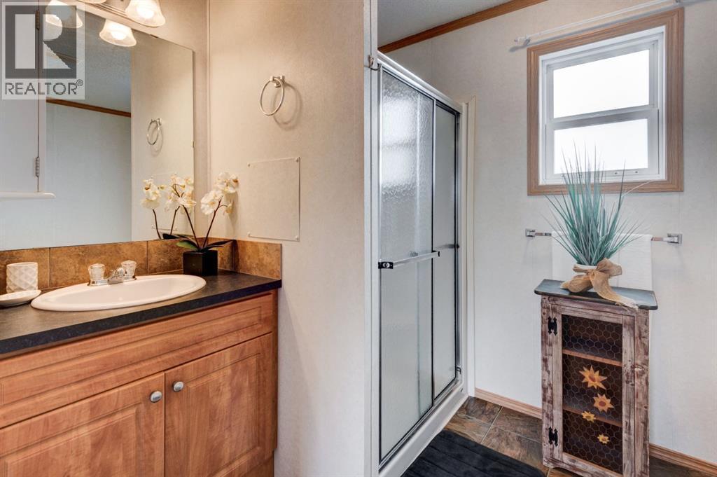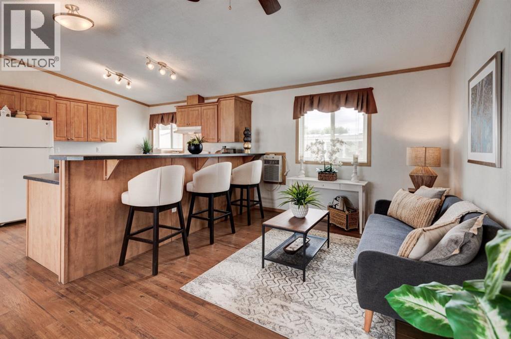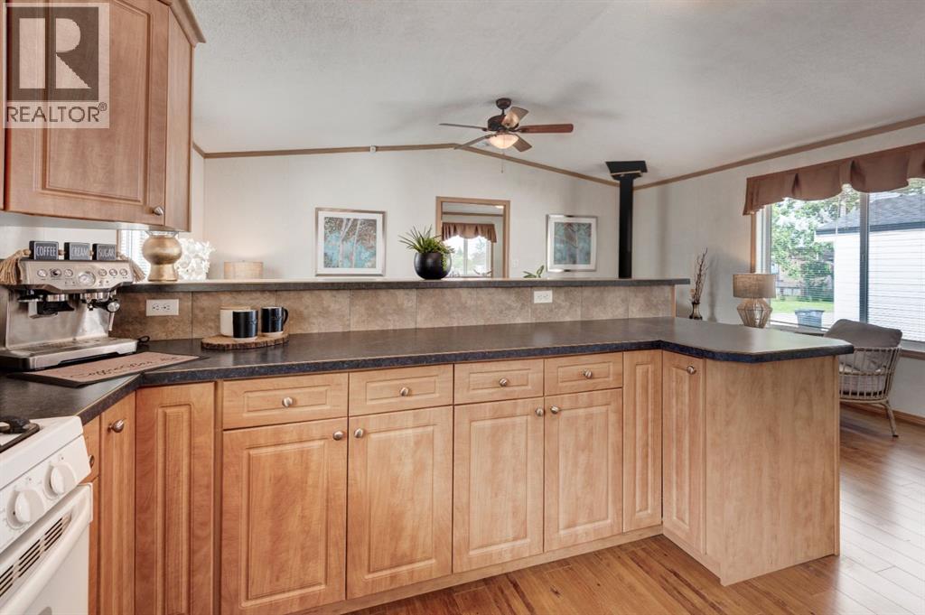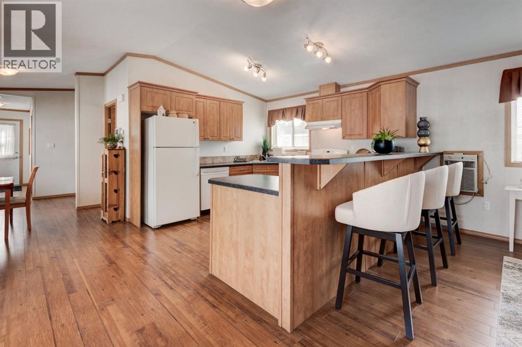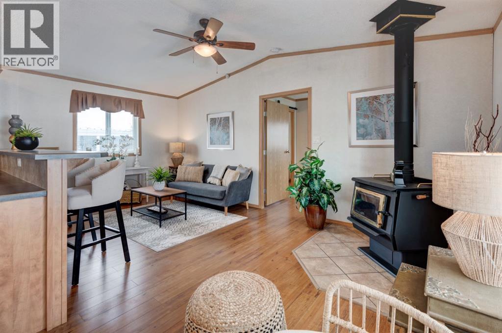Enter into this immaculate and charming 2013, 1120 sf home located in the plus-18 section of Mountview. Prepare to be impressed with everything this home has to offer. It is spacious with vaulted ceilings, bright and airy with the many windows in the living area, and the entire home, and open concept living. Click on the interactive iGuide for a virtual tour and "virtual walk through". This large kitchen has beautiful wood cabinets, loads of counter space to explore your culinary side, prep for your cooking and baking adventures plus plenty of room to move around. Newly installed dishwasher, newer gas stove, newer fridge. There is a large counter peninsula island that provides even more space for eating or entertaining. Adjacent to the kitchen is a spacious dining area that is drenched in light. The living room has ample space for your furniture and the open den area provides a wood burning woodstove (WETT inspection done) to keep you warm and cozy. This is a 2013 model, 20x56, with two bedrooms, two bathrooms, and has everything you could need. The primary bedroom at the front of the home has a huge ensuite with soaker tub, separate shower, and good size vanity. This bedroom can easily accommodate a king bed. The second bedroom is at the opposite end, along with a 4-piece bath, large separate laundry room with a new on-demand hot water system and back entry hall. This home has a new composite vinyl fence, new skirting, new front deck, new eavestrough and downspouts, new sewer pipes, and a newly installed electrical hookup and meter, with a City of Calgary permit. Don’t wait to view this property - you won’t be disappointed! Lease approval is required. Pets are allowed with approval. Lease rate of $1100 per month includes water, sewer, garbage pick up and snow removal. Sunpark Mountview is across from Elliston Park, minutes to East Hills Shopping Centre, Stoney Trail, International Avenue, and all levels of transit, shopping, restaurants and ame nities. (id:6769)