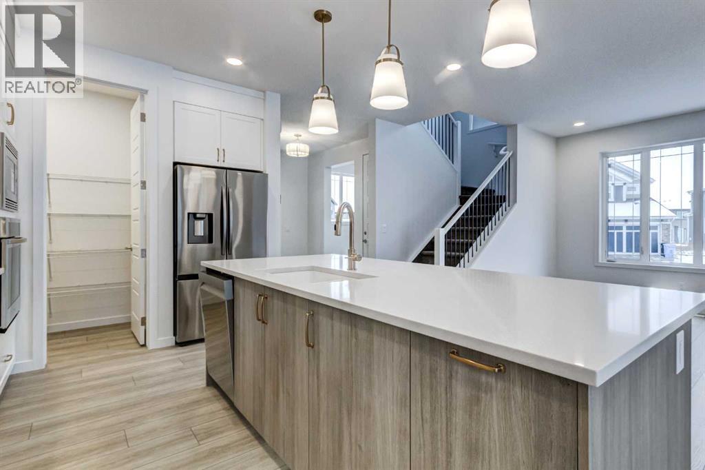 Be prepared to be impressed from the moment you step inside! Introducing the PERCY—brand new, never lived in, and built by Excel Homes, an award-winning builder with over 35 years of experience, more than 15,000 homes constructed, and 75 industry and design awards. Excel continues to deliver exceptional quality, innovation, and peace of mind. Offering 2139 sq ft of beautifully designed living space plus a fully developed basement with a side entrance and a legal basement suite, this home checks every box. A spacious foyer welcomes you to the main floor, where a versatile flex room provides the perfect home office or study space. Luxury wide-plank flooring spans the entire level, flowing into the bright, airy great room that opens onto an exquisite kitchen featuring abundant cabinetry and drawers, a corner pantry, a large island with seating for four, a gas range, and a built-in microwave/oven combo—making meal prep a joy. The dining nook at the rear of the home overlooks the southwest-facing backyard and comfortably fits large family gatherings, while the great room’s electric fireplace adds warmth and style. The side-entry garage allows for an expansive mudroom, and with 27' on the long side, it easily accommodates a full-sized truck. Metal railings guide you upstairs to a central bonus room with vaulted ceilings and pot lighting. The grand primary suite offers a luxurious retreat with a 5-piece ensuite showcasing 24" tile floors, quartz counters, a tile-skirted soaker tub, and a double shower, plus a large walk-in closet that conveniently connects to the laundry room for effortless organization. Two additional generous bedrooms share a well-appointed family bath with quartz counters. The legal basement suite impresses with big windows that fill the space with natural light and includes a full kitchen with island and quartz countertops, complete appliance package, spacious family room, large bedroom with a huge window, 4-piece bath, and its own private laundry. Sep arate utilities ensure complete independence for the suite (id:6769)
