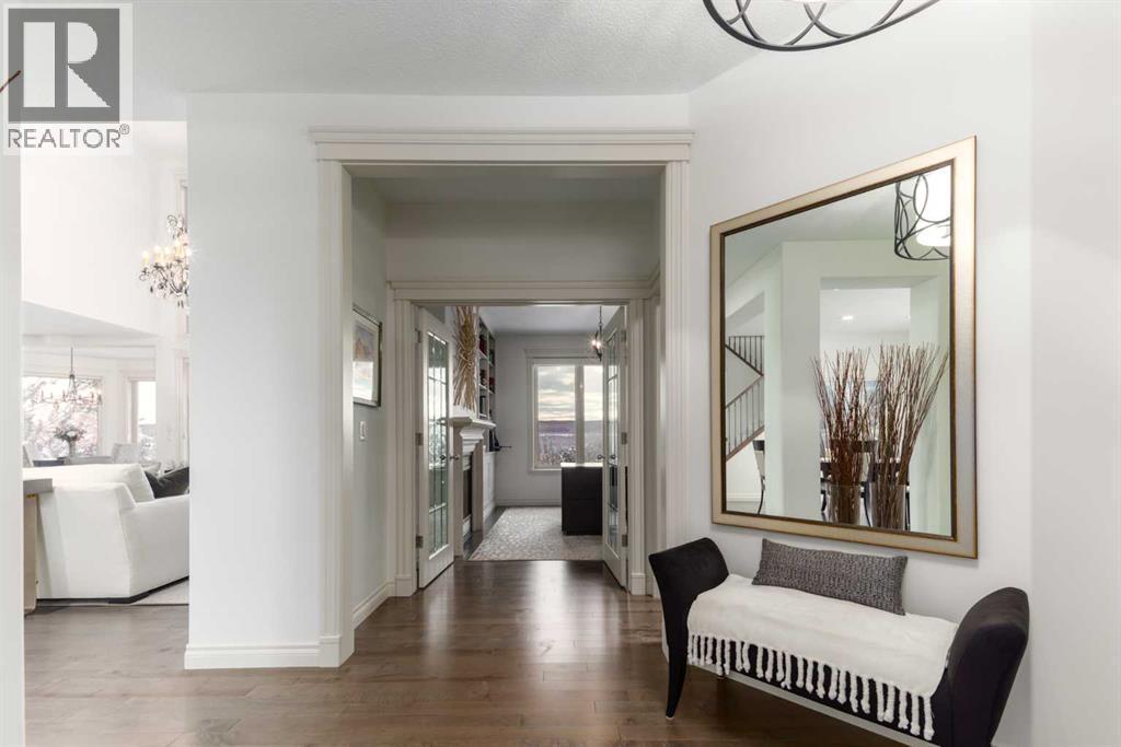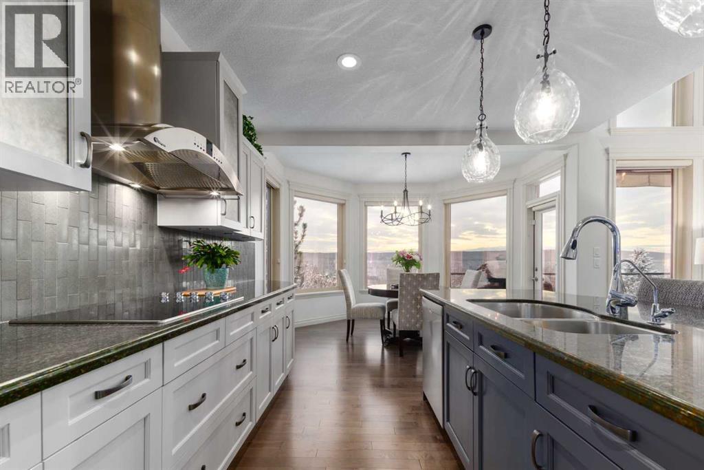 Tucked into one of the most coveted areas in Discovery Ridge is 33 Discovery Rise SW. Backing onto Griffith Woods Park & the Discovery Ridge Ponds, this beautifully updated South facing walkout home offers year-round views and daily connection to nature that is rarely found in the city. From glowing West sunsets and summer sun showers to winter mornings and dramatic seasonal skies, the scenery is always changing. Rocky Mountain views to the West paired with sweeping Elbow River valley landscapes delivers a rural feeling with the perks of city living. The front entrance is thoughtfully arranged with a private main-floor office tucked away alongside an elegantly updated powder room. As you enter, you are met with solid hardwood floors flowing throughout the main level, complemented by stain resistant carpet upstairs. The open concept main floor is designed for gathering, blending the kitchen, dining spaces, and living area into one cohesive experience. The great room boasts soaring ceiling heights featuring coffered details with oversized windows framing the stunning views. A striking fireplace finished in sleek tile is double sided to the office & a statement crystal chandelier adds elegance and warmth. Enjoy your updated gourmet kitchen featuring granite countertops, trendy tile backsplash, updated appliances, a spacious pantry, & refreshed two-tone cabinetry. A curated outdoor living space with glass inserts preserving open sightlines, low maintenance Duradek, & a motorized retractable awning come together to provide the perfect setting to get some shade from Calgary’s renowned sunny days or enjoy sun showers & electrical storms. Upstairs, an ideal family layout open to the lower level includes three bedrooms filled with natural light. The primary retreat captures South exposures & West evening glow. The thoughtfully updated ensuite includes a quartz topped dual vanity, stand alone soaker tub, heated floors, and a glass enclosed shower with floor-to-ceiling luxurio us tile & a wood accent bench. This leads directly into your custom walk-in closet featuring plenty of hanging, drawers, & open cabinetry to display your favorite designer pieces. The two additional spacious bedrooms are complemented by a 4-piece bathroom, ideal for family and guests. Enjoy the walkout lower level adding remarkable flexibility with radiant in-floor heat, a dedicated fitness room, fourth bedroom, a 4-piece bathroom, and an open media/family space with room for a games area and future bar potential. The triple attached garage provides ample space for vehicles, storage, and seasonal gear. High efficiency furnaces, 2 A/C units, Nest thermostats, humidifiers, an air purification system, and central vacuum provide comfort and ease year-round. All of this is set within one of Calgary’s most desirable, nature connected communities with direct access to pathways and Griffith Woods. Enjoy the lifestyle, quick access to Westhills, downtown, and top public and private schools. (id:6769)