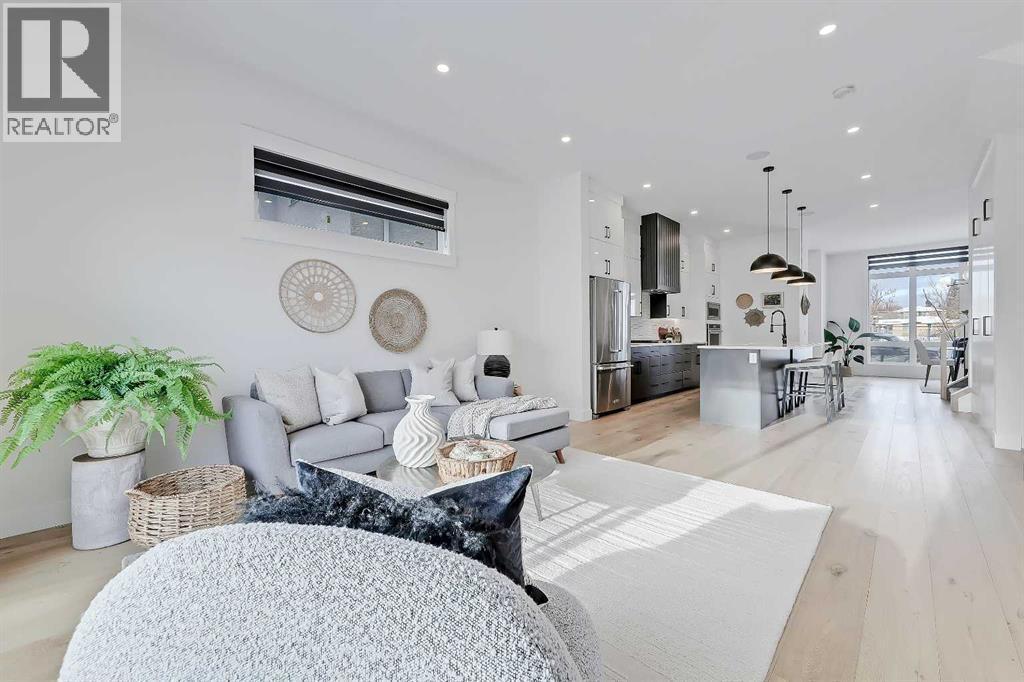 Discover a beautifully designed, custom SEMI-DETACHED home in the heart of WINDSOR PARK! Positioned on a quiet, tree-lined street FACING A GREEN SPACE, this home blends architectural vision with warm everyday comfort. The main floor opens with a refined dining room wrapped in natural light, complete with feature-wall detailing that sets a welcoming, upscale tone. Just beyond, the chef’s kitchen steals the spotlight with a large quartz island, custom cabinetry, and upgraded appliances that make day-to-day cooking feel easy and entertaining feel effortless. A smooth flow leads into the spacious living room, where a full-height tiled gas fireplace adds texture and warmth, balanced by oversized windows framing the south-facing backyard.At the rear, a well-planned mudroom keeps life organized with built-ins for coats, bags, and sports gear, and the powder room offers a stylish touch for guests with modern finishes and a clean, elegant aesthetic.Upstairs, the primary suite feels like a true retreat, starting with vaulted ceilings and a dedicated coffee bar that adds a boutique-hotel feel to your mornings. Two walk-in closets offer exceptional storage, while the spa-inspired ensuite features a freestanding soaker tub, double vanities, and a glass-enclosed shower finished in soft stone tones that echo throughout the upper level. Down the hall, two additional bedrooms share a beautifully designed Jack-and-Jill bathroom with a dual vanity and contemporary fixtures, giving everyone the space they need. A separate laundry room completes the upper level with added convenience.The lower level adds another dimension to the home. The expansive recreation room features a built-in media centre and open shelving, making it the perfect zone for movie nights, gaming, or relaxed gatherings. A sleek wet bar with a beverage fridge and sink elevates the space for entertaining, and an additional bedroom with a full bathroom provides comfort and privacy for guests. Ample storage keeps clutter tucked away, preserving a clean, open feel throughout.Outside, the south-facing backyard offers a sunny retreat for summer evenings, weekend barbecues, or quiet morning coffee on the deck. The double detached garage with rear-lane access keeps vehicles protected and provides easy in-and-out access year-round.Windsor Park continues to be one of Calgary’s most desirable inner-city neighbourhoods for its accessibility and charm. From this address, you’re minutes from Chinook Centre, the boutiques and dining of Britannia Plaza, and local favourites like Monogram Coffee, Village Ice Cream, and Sunterra Market. Green spaces such as Sandy Beach and the Elbow River pathways are close by, along with excellent schools, including Elboya School, Western Canada High School, and St. Augustine. Commuting is effortless with quick access to Macleod Trail, Glenmore Trail, and Elbow Drive for whole city access. (id:6769)