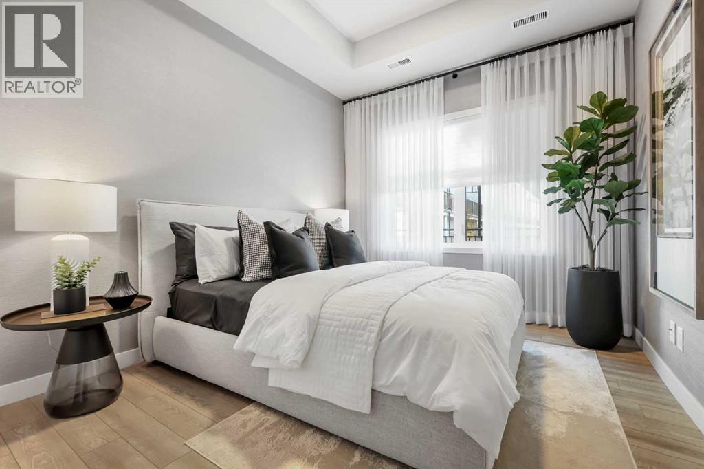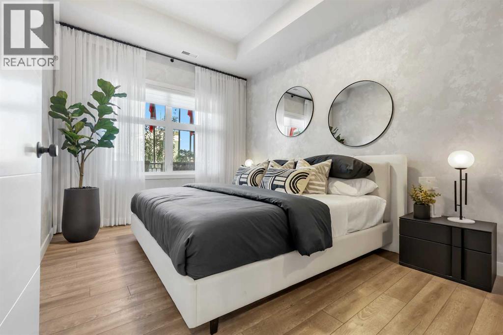 LOVE YOUR LIFESTYLE! Les Jardins by Jayman BUILT next to Quarry Park. Inspired by the grand gardens of France, you will appreciate the lush central garden of Les Jardins. Escape here to connect with Nature while you savor the colorful blooms and vegetation in this gorgeous space. Ideally situated within steps of Quarry Park, you will be more than impressed. Welcome home to 70,000 square feet of community gardens, a stunning Fitness Centre, a Dedicated dog park for your fur baby, and an outstanding OPEN FLOOR PLAN with unbelievable CORE PERFORMANCE. You are invited into a thoughtfully planned 2 Bedroom, 2 Full Bath plus expansive balcony beautiful Condo boasting QUARTZ COUNTERS throughout, SLEEK PANELLED fridge, freezer, and dishwasher, BUILT IN hood fan, electric freestanding range with self clean, and a built in stainless steel microwave. Luxury Vinyl Plank Flooring, High End Fixtures, Smart Home Technology, A/C and your very own in suite WASHER AND DRYER. This beautiful suite offers bright bedrooms with large windows, a storage area with a hanging rack, a large Primary Suite with a walk-through closet and en suite, a spacious dining/living area with sliding doors, an open concept layout between the kitchen, dining, and living room, and ample kitchen and bathroom counter space. STANDARD INCLUSIONS: Solar panels to power common spaces, smart home technology, air conditioning, state-of-the-art fitness center, high-end interior finishings, ample visitor parking, luxurious hallway design, forced air heating and cooling, and window coverings in bedrooms. Offering a lifestyle of easy maintenance where the exterior beauty matches the interior beauty with seamless transition. Les Jardins features central gardens, a walkable lifestyle, maintenance-free living, nature nearby, quick and convenient access, smart and sustainable, fitness at your fingertips, and quick access to Deerfoot Trail and Glenmore Trail. It is located 20 minutes from downtown, minutes from the Bow River and pathway system, and within walking distance to shopping, dining, and amenities. Schedule your appointment today! (id:6769)