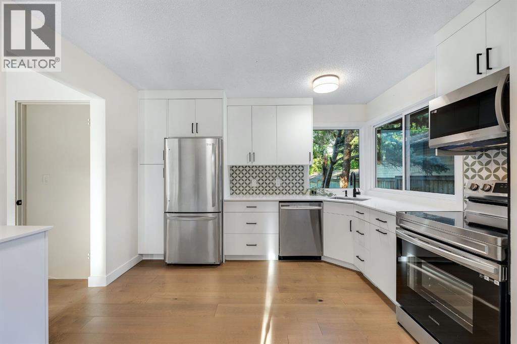 Stunning! You will absolutely love this modern spectacle in marvellous Midnapore, offering over 1500 sq ft of beautifully finished living space. This fully renovated 3-bedroom, 3-level split has been masterfully crafted into a true showpiece that will impress even the most discerning buyer. The intelligent layout is anchored by the chef inspired kitchen featuring expansive quartz countertops, stainless steel appliances, ample cabinetry with exceptional storage, designer lighting, a breakfast bar, a patio door for easy BBQ access, and smart, stylish storage solutions throughout. The main floor also boasts a spacious living room with large front windows with amazing light filtration, luxurious rich hardwood floors, a formal dining area, and an elegantly updated 4 piece bathroom with generous storage. Upstairs, you'll find a sun filled primary bedroom with a functional 2 piece ensuite and wardrobe closet, plus two additional generously sized bedrooms with excellent lighting and all new windows. The fully developed lower level offers a cozy yet open recreation area, games room, den, modern finishes, and ample storage including a high efficiency furnace (2 years old) and laundry area with washer and dryer. The private, sunny backyard features mature landscaping, plenty of green space perfect for summer entertaining, and convenient RV gate access with potential for a future double garage. Situated on an oversized lot, this home is ideally located near schools, Fish Creek Park, major car and bike routes, community centres, shopping, and best of all just steps from Lake Midnapore. Nestled on one of the most desirable streets in Midnapore near the Fish Creek LRT, this is a must-see property. Book your private showing today! (id:6769)