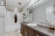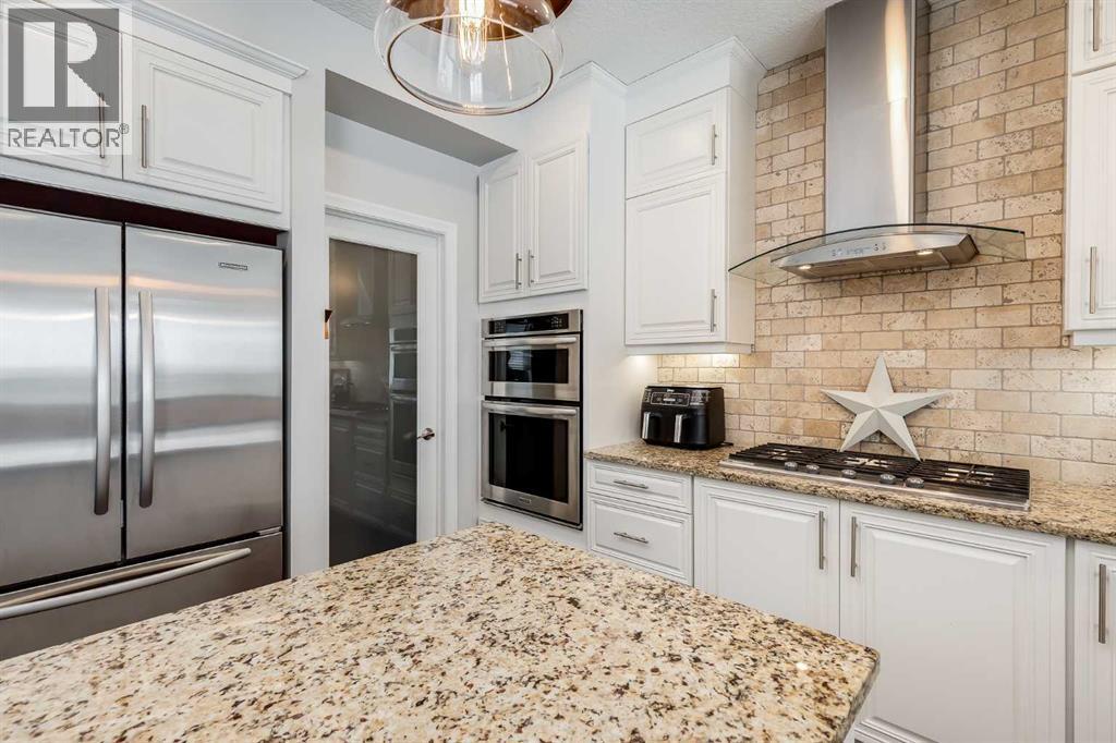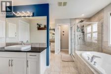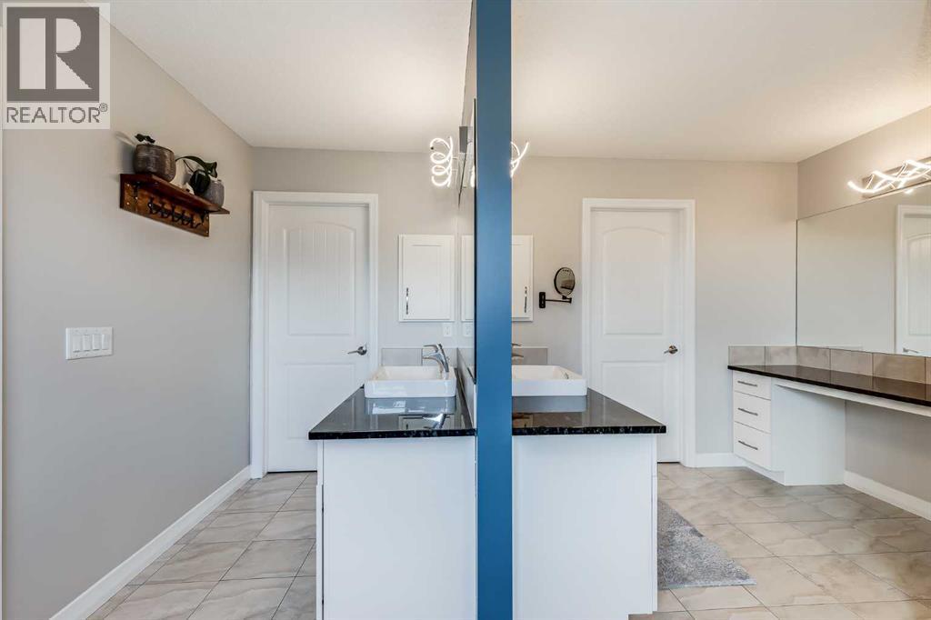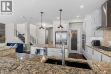 Set on a quiet cul-de-sac in the sought-after lake community of Auburn Bay, this stunning walkout home is perfectly positioned on a huge pie lot with a sunny south-facing backyard that backs onto greenspace and walking paths with beautiful mountain views. The location places you within a 10-minute walk to Auburn Bay Lake, plus just a quick drive to the South Health Campus, the world’s largest YMCA, and abundant shopping and dining options. Step inside to 9’ ceilings, oversized windows, built-in speakers and central air conditioning that create an inviting main level filled with comfort and natural light. The chef’s kitchen inspires culinary creativity with a centre prep island, a peninsula island with casual seating, stone countertops, stainless steel appliances, a gas cooktop, full-height cabinetry and a walk-in pantry for extra storage. A designer dining room flows seamlessly to the massive upper deck where you can easily entertain with beautiful mountain views as the backdrop. The living room combines warmth and style with its wood feature wall and gas fireplace, creating a relaxing setting for quiet evenings. A tucked-away powder room completes this level. Upstairs, a central bonus room sets the stage for family movie nights and separates the primary suite from the secondary bedrooms for ultimate privacy. The primary occupies its own wing and provides a serene retreat with space to unwind, a large walk-in closet and a luxurious five-piece ensuite featuring dual vanities, a makeup station, a deep soaker tub and a separate rain shower. Two additional spacious bedrooms, a full four-piece bath and the convenience of upper-level laundry complete this floor. The fully finished walkout basement extends the living space with a modern aesthetic and wide-open versatility for a home gym, media setup, games, hobbies and more. Then easily refill drinks and snacks at the sleek wet bar. This level also offers a guest bedroom and a contemporary three-piece bath with an indulgen t multi-head shower. Outdoors, enjoy a rare yard size thanks to the pie lot, providing endless room for children and pets to play. A full-width upper deck with glass railings and stairs connects to a lower covered patio set on stamped concrete, ensuring comfortable outdoor living in every season. The yard is fenced, treed and private, making it ideal for both relaxation and play. Additional features include an oversized double attached garage with dual overhead doors. This home blends family functionality with executive finishes, all in a premier lake community where year-round activities and exceptional amenities are right at your doorstep! (id:6769)