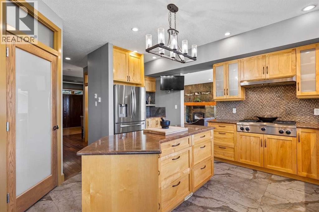 Experience refined luxury and versatility in this immaculately maintained, spotless, and exceptionally designed detached home, featuring a triple oversized attached garage and one bedroom walk-out basement. Designed with sophistication and comfort in mind, this home is the perfect blend of timeless elegance and modern convenience — ideal for multigenerational living. Set on a beautifully landscaped and fully fenced lot, this home captures attention with its architectural excellence and thoughtful layout across three meticulously finished levels. Step through the grand front entrance into a sun-filled open-concept main floor, where gleaming floors, high ceilings, expansive windows create an atmosphere of openness and light. At the heart of the home lies a chef-inspired gourmet kitchen, featuring high-end appliances, a sleek gas cooktop, and abundant cabinetry that combines function with flair. Complementing this is a large pantry and a kitchen island, ideal for preparing elaborate meals while spending time with family and friends. A custom-designed mudroom seamlessly connects the home to the garage, providing exceptional organization with built-in storage — a true luxury for active family living. Upstairs, discover a stunning primary bedroom, complete with its own private ensuite with a steam shower room and walk-in closet, ensuring unparalleled comfort and privacy. On this level you will also find the other 2 bedrooms and a 4 piece bathroom. A bonus room offers flexible space for a media lounge, home office, or playroom, while the convenient upper-level laundry adds ease to everyday routines. The professionally developed basement features a private entrance, offering a spacious and bright bedroom (with its own full ensuite), a bright open-concept family/game area, and a gym/flex area with beautiful views of the lake. The landscaped backyard features a beautiful stone patio and a gazebo, perfect for summer barbecues, evening gatherings, or simply relaxing in a peace ful outdoor setting. This rare offering combines space, luxury, and versatility in one exceptional property, perfect for anyone seeking an elevated lifestyle in a serene lakeside community. Situated conveniently close to Cochrane (5 minutes away) for easy access to shopping and schools, while still providing a relaxed retreat to unwind after a busy day, this location is one of the most suitable in Rocky View County. (id:6769)