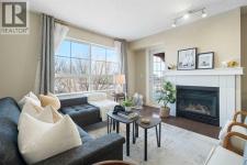 Perfect opportunity! Why rent when you can own this TOP-FLOOR CORNER UNIT w/ 2 TITLED STALLS + storage, steps from MRU! Welcome to UNIT 408 at Trafalgar House, a bright, spacious 2-BED + DEN, 2-FULL BATH condo offering +900 SQ FT of well-maintained living space. Upon entry, a generous front entry leads to a versatile bonus area that can serve as a mudroom, workspace, or cozy den with a full wardrobe closet, along with mirrored double doors concealing a standard-size washer and dryer and closet storage to keep essentials tucked away and out of sight. Just beyond, the kitchen impresses with white marbled quartz counters, ample cabinetry, and matching black appliances for a sleek, cohesive look. Island seating invites conversation while cooking and flows naturally into the dining and living areas, perfect for everyday life and when entertaining. Bright and airy, the living room is filled with plenty of natural light from the expansive windows, while a cozy gas fireplace adds warmth and charm. Step outside to the covered corner balcony, perfect for morning coffee or relaxing evenings, complete with a gas BBQ hookup for year-round grilling. The king-sized primary bedroom features a walk-through closet with custom built-ins and a private 4-piece ensuite complete with a soaker bathtub, while the second bedroom is set across the unit beside the main bath, ideal for privacy and separation when hosting guests, roommates, or family. This standout unit includes two titled heated underground parking stalls (a rare find and perk in the building) and an assigned secure storage locker, with convenient access to amenities: gym, party room, tire storage room, car wash bay, bike storage, and a landscaped courtyard retreat w/ gazebo. Located in Lincoln Park, this pet-friendly condo is minutes from major routes, transit, shops, and dining, ideal for walking, biking or casual strolls. Whether you’re a first-time home buyer, student, professional, investor, or downsizer seeking low-mainte nance living, this home checks every box: the desirable blend of size, layout, and lifestyle in a top-floor gem offering greater privacy, no overhead noise, elevated views, and lasting value. Check out the online virtual tour, schedule your private showing today, and don’t miss the chance to own the spectacular Unit 408! (id:6769)