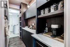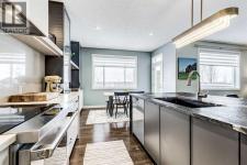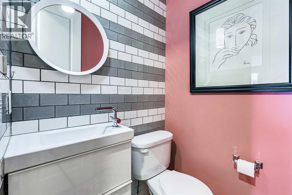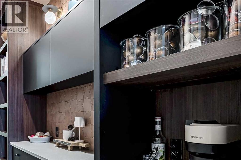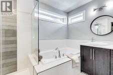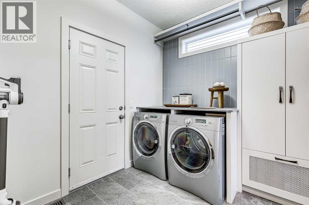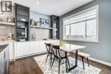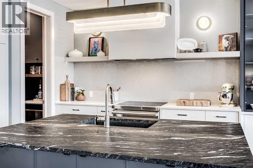 This exceptional, one-of-a-kind home features a fully custom mid-century modern renovation by kitchen designer Denca, showcasing a showpiece kitchen, walkthrough pantry, incredible millwork, and thoughtful design throughout. Oversized front door and 9-foot foyer ceilings set the tone for the bright, open interior. The custom kitchen boasts a leathered granite island, floor-to-ceiling cabinetry with pull-outs and custom inserts, quartz countertops and backsplash, open shelving with under-cabinet lighting, and top-of-the-line appliances including a Wolf induction range and Miele dishwasher. Designer lighting and elegant sconces complete the space.Adjacent is a casual dining area with a built-in credenza and abundant storage. The walkthrough pantry features a hidden spice rack, coffee bar, functional shelving, and a striking terra cotta tiled wall. Hardwood floors flow into the living room with a full-height metal-clad fireplace. A flexible front room can serve as a formal dining area, sitting room, or office, while the boutique-hotel-inspired powder room impresses with elevated finishes.The main level also includes a practical laundry and mudroom with stone counters, custom closets, and detailed tile work. Upstairs, a vaulted bonus room with custom wall units is perfect for family gatherings. The primary suite offers custom woodwork, a spa-like ensuite with soaker tub, 10mm glass shower, and a California Closets walk-in. Two additional bedrooms with custom closets and a full bathroom complete the upper level.Enjoy complete privacy with no rear neighbors in the landscaped backyard featuring an aggregate patio, rundle stone accents, grass, mature trees, and low-maintenance perennials. Exterior finishes include elegant stucco and stone, plus holiday-ready Gemstone lighting. Additional features: on-demand hot water, maintained furnace, water softener, central vacuum, and a basement ready for development with large windows and a bathroom rough-in. Meticulously cared- for by the original owners, on a quiet street, walking distance to schools and near shopping, this home offers exceptional craftsmanship and design unlike any other. (id:6769)