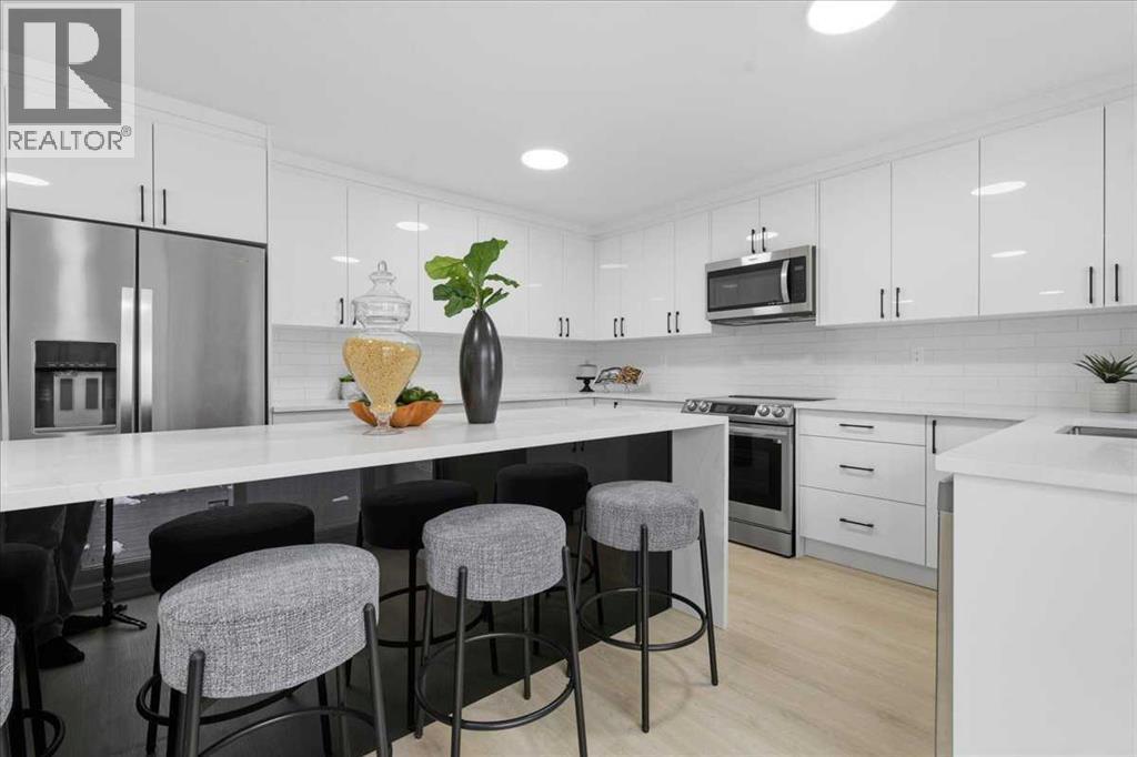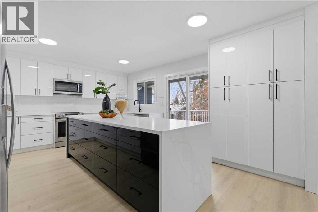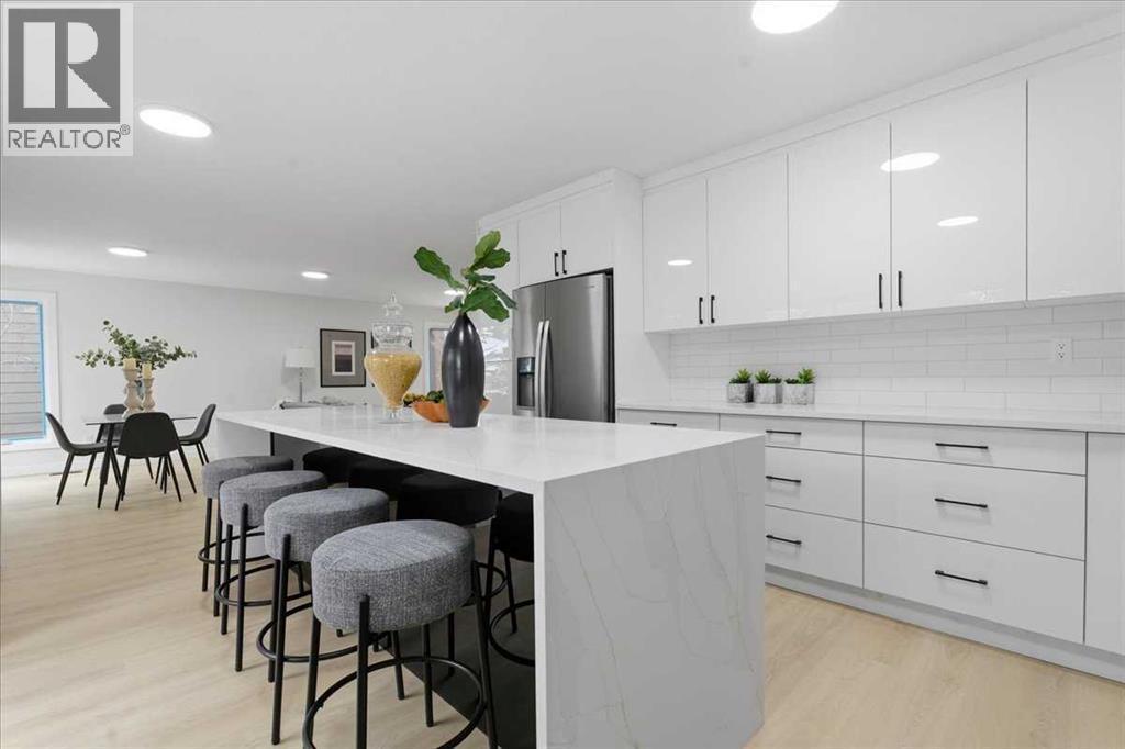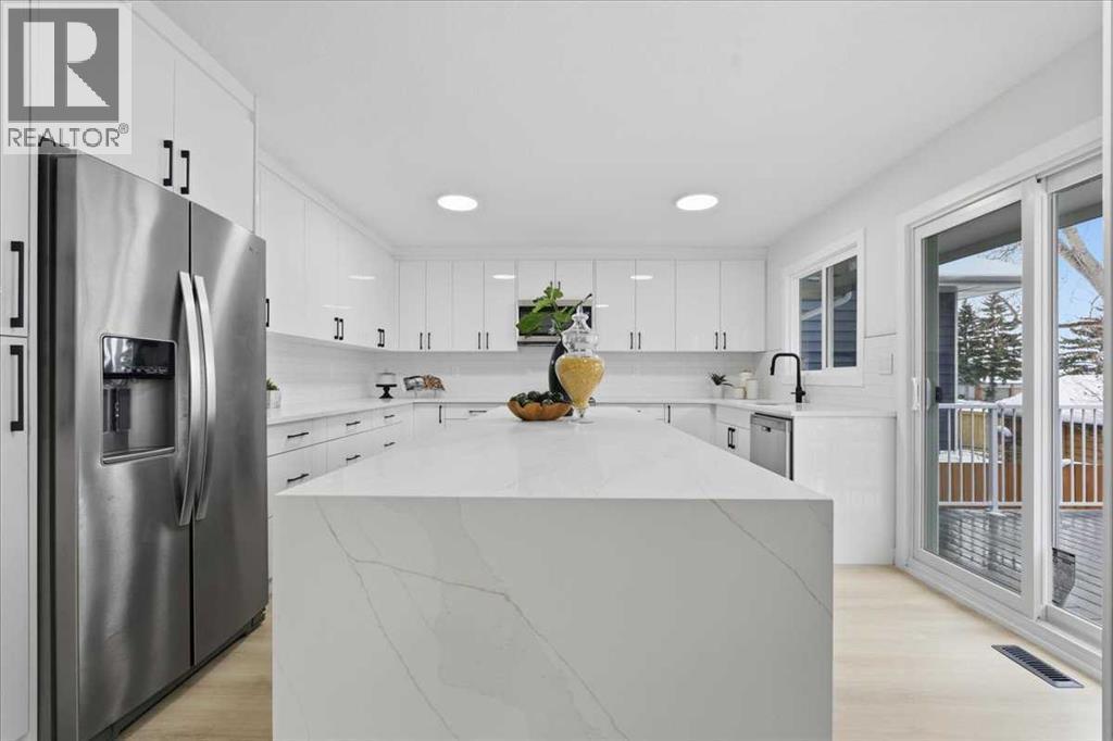 FULLY RENOVATED | DEVELOPED BASEMENT WITH WOOD BURNING FIREPLACE | GORGEOUS KITCHEN WITH SLIDING DOORS TO DECK | OPEN CONCEPT | PRIVATE SOUTH-FACING BACKYARD | Beautifully updated interiors create a warm and inviting atmosphere throughout this thoughtfully redesigned home offering an open concept layout, modern finishes and a bright south backyard. Luxury vinyl plank flooring flows throughout all levels, and corner windows fill the living room with natural light, encouraging relaxation and easy conversation. Clear sightlines into the dining area support seamless entertaining and effortless family meals. A stunning kitchen anchors the main floor with sleek 2 toned cabinetry, stone counters, a waterfall edge island and stainless steel appliances, all positioned to overlook the deck for a natural indoor-outdoor connection. The second level introduces a spacious bedroom with a custom walk-in closet and a stylish 3 piece bathroom, giving guests, teens or extended family a comfortable private space. Another level up, the indulgent primary retreat delivers a generous footprint, a custom walk-in closet and a luxurious 4 piece ensuite designed for everyday comfort, while the 3rd bedroom sits nearby for children or a home office. Practical function continues on the lower level with interior access to the double attached garage, a convenient laundry area and a separate entrance. The basement mirrors the home’s contemporary style with a huge rec room offering abundant space for movie nights, games and relaxed gatherings beside the cozy wood burning fireplace. A wet bar enhances hosting and makes snacks and drink refills effortless, complemented by a well-appointed 3 piece bathroom. Outside, mature landscaping elevates the sense of privacy while a massive 2 tiered deck provides space for barbequing, unwinding and soaking up the sunny south exposure. The large yard gives kids and pets room to play and garden enthusiasts room to create. This quiet Deer Run location is surrounded b y endless recreation from the pathways of Fish Creek Park to the beach at Sikome Lake. Walk to Deer Run School, transit, an off-leash dog park, the community centre and numerous shops and restaurants. Nature trails, Annie’s Café and The Bow Valley Ranche sit moments away, offering simple lunches, ice cream treats, coffee dates and elevated dinner experiences. This beautifully updated home delivers comfort, style and everyday convenience in one of Deer Run’s most naturally connected settings. (id:6769)