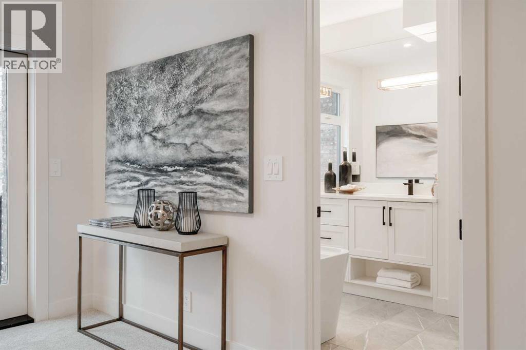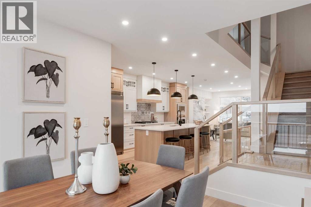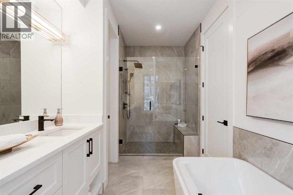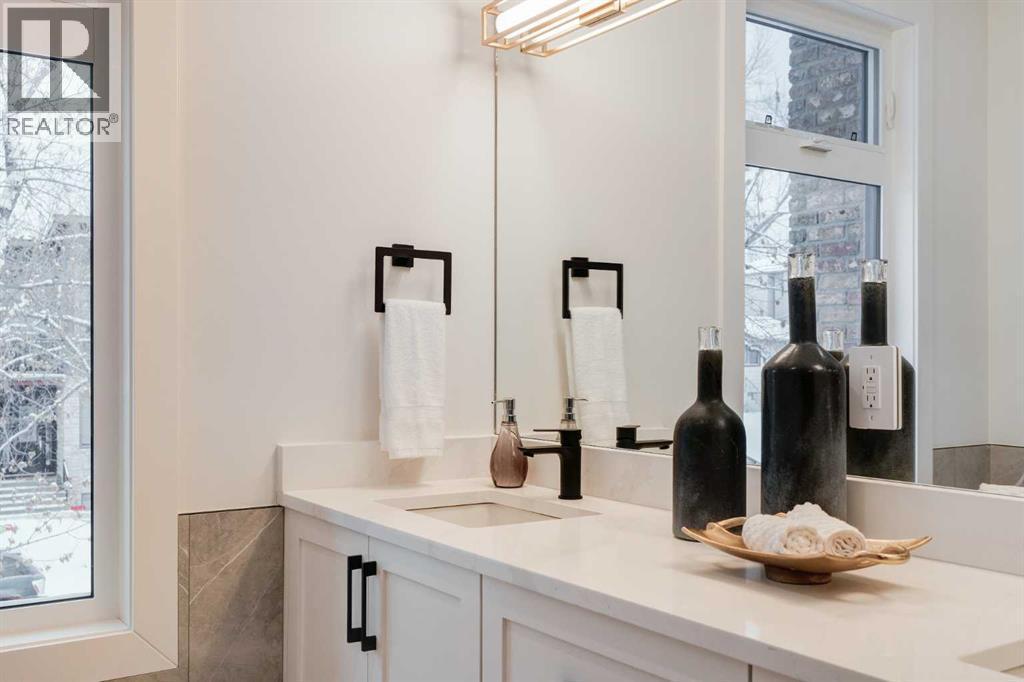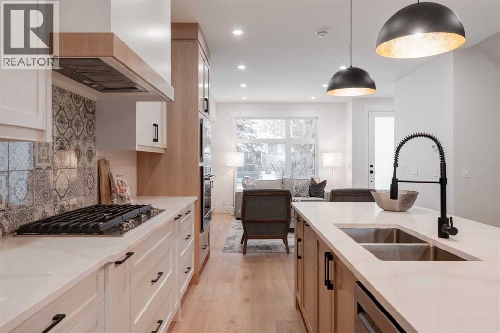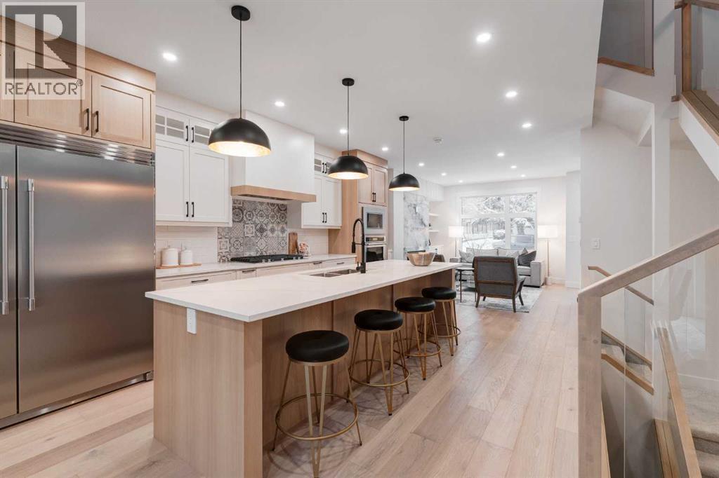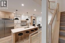 Priced to Sell! Discover modern luxury in this 5+ bedroom, 4 1/2-baths, semi-detached home boasting 2,468 sq. ft. across three levels, plus a fully developed 868 sq. ft. lower level. The main floor features an elegant central Kitchen with long island, elegant two-tone cabinetry, gorgeous countertops, custom covered hoodfan, black accents, and upscale stainless steel appliances including a commercial grade fridge! This Kitchen layout is ideal for entertaining; complete with a convenient walk-in pantry with a countertop, shelves and drawers that makes organizing a breeze! White oak engineered hardwood flooring flows throughout, complementing high ceilings on the Main and Lower levels. The 2nd level features a spacious Primary bedroom with an impressive walk-in closet, luxurious 5 piece ensuite with deep pedestal soaker tub, over-sized shower, separate water closet and dual vanity with culture marble countertop. It also has its own private West-facing deck! There are also two more bedrooms, a 3-piece bathroom and an oversized laundry area with an impressive amount of countertop space, laundry sink and cabinetry. The 3rd floor bonus area has a very spacious living area, a large bedroom with an impressive walk-in closet, 3-piece bathroom and an additional walk-in closet. This floor also has an AMAZING outdoor living space that could easily fit a sectional, fire-table and dining set to enjoy those warm starry Calgary evenings! The lower let has another bedroom, a den, study nook, 3-piece bathroom, and a games/recreation/media area with a wet bar. Outdoor living with three decks adds so many living options. The property also has a private backyard with double detached garage and new fencing on both sides of the property. With impeccable design, ample space, and a prime, tree-lined, inner city southwest location in Killarney - just steps away from schools, parks, pathways and other conveniences, this home and location is a true gem! (id:6769)