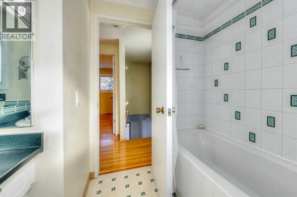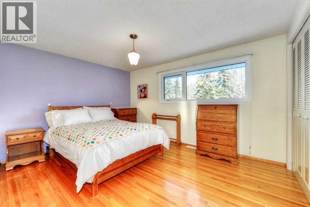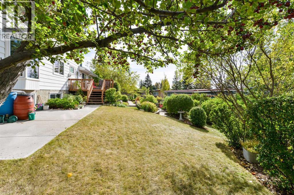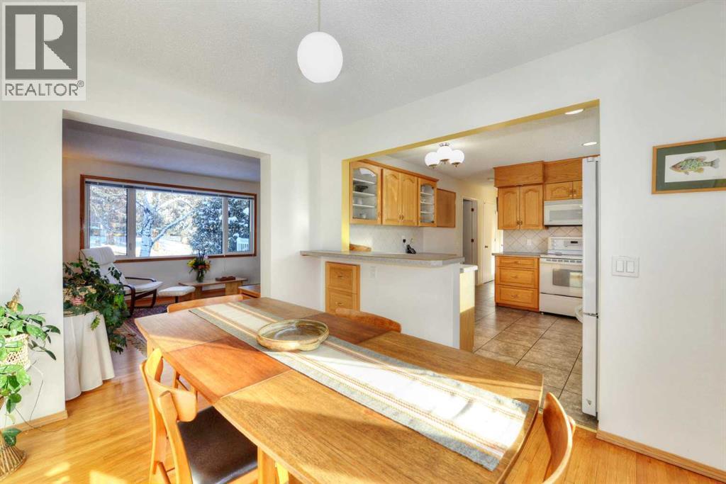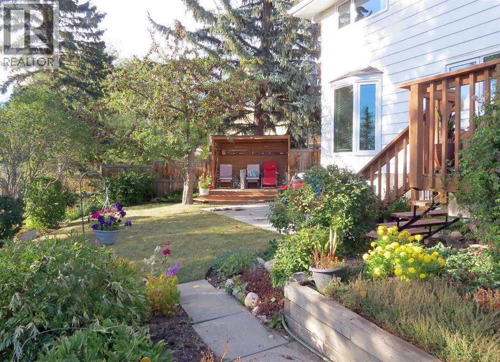 Rare Dalhousie Gem! 5 bedroom, 2 1/2 bath family home, with over 2400+ sqft of living space complete with a lower level walk-up! This family home sits on a one-of-a kind oversized pie lot in a quiet bay cul-de-sac with a SW backyard flowing directly onto green space. Direct daily access to parklands, pathways, and extra room to play. Hardwood floors across the main and upper levels create a warm, cohesive backdrop while triple-glazed windows on these floors enhance energy efficiency and quiet comfort. Large front porch welcomes morning coffees before stepping into a large foyer and a sunlit living room with oversized windows that frame mature trees. A bayed dining room is ideal for gatherings and connects easily to a well-designed kitchen with abundant cabinetry, generous counter space, a wide window above the sink and a peninsula island that encourages casual conversations during meal prep. A spacious main floor family room offers a relaxing hub with a gas fire set into a full stone feature wall, while sliding glass doors extend living outdoors to a substantial deck with views toward the city park and mountains. A convenient powder room completes this level. Upstairs the master bedroom and 3 additional bedrooms allows for flexibility for kids, guests, work-from-home, or room to create a spa inspired retreat with ensuite and walk in closet! A family 4 piece bathroom completes this level. The fully finished lower level expands the home’s versatility with a separate walk-up entrance providing exceptional functionality for extended family, teens, nanny or privacy minded guests. Huge recreation room for movie nights and games, a den with built-ins that suits an office or creative space, a 5th bedroom and a full 4 piece bathroom. Two high-efficiency furnaces supply flexible heating control across the home and a new permitted electrical panel and electrical work using city-approved procedures deliver peace of mind for long-term safety and an insulated, drywalled double garage includes an extra-high ceiling and door ideal for a small motorhome, or ski-box-equipped vehicle,, complemented by a workbench and durable flooring. Outdoor living is exceptional thanks to a massive south yard with established trees, generous lawn space and a highly productive fruit, vegetable and herb garden set across 3 terraced beds. A covered garden gazebo creates a quiet retreat. An added bonus is the back gate opens directly to an expansive green space and a children’s playground and the home sits within an easy walk to all 7 schools (Grades 1-12 and an IB program) plus a short, pleasant pathway stroll to Dalhousie LRT Station for effortless commuting to UofC and the core. Full range of shops, dining, 2 major grocery stores and services at Dalhousie Station add daily convenience, while nearby parks, an off-leash area, tennis, basketball courts, and an active community association for all ages. Highly walkable location close to the University of Calgary and all major amenities (id:6769)