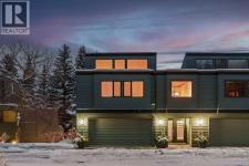Set within an ultra-exclusive community of just 16 architect-designed units, this completely redesigned end unit offers a rare blend of privacy, sophistication, and golf course living. Conceived by architect Gordon Atkins, the complex is centred around a beautifully manicured green space and a discreet private drive, creating a sense of calm the moment you enter the community. Inside, the foyer opens onto the main living area, where the showpiece of the home immediately draws the eye: a dramatic double-level, wood-burning fireplace finished in brick, connecting the main and lower floor in one striking vertical line. Warm hardwood floors run throughout, while expansive windows frame views over Hole 2 and 3 on the Silver Springs Golf Course, bathing the space in natural light and highlighting the home’s connection to its surroundings. The completely updated kitchen feels polished and purposeful, designed for both everyday ease and elevated entertaining. Quartz countertops, a gas cooktop with a contemporary hood fan, stainless steel appliances, a wine fridge tucked inside the butlers pantry, and sleek cabinetry with under-cabinet lighting. An adjacent dining area provides an elegant setting for intimate dinners or casual gatherings. Thoughtfully tucked away on this level are the main-floor laundry room, complete with sink, and a refined 2-piece powder room. From the main living area, doors lead to a generous deck with a gas line for your BBQ, offering a comfortable outdoor space to dine or relax while enjoying the green space and golf course beyond. An open-riser staircase leads to the upper level, to discover the primary suite is a true sanctuary, with soaring ceiling lines, California shutters, and patio doors opening to a private south-facing balcony-an ideal spot for a quiet morning coffee in the sun. The 5-piece ensuite feels spa-inspired, featuring an oversized walk-in shower, separate soaker tub, dual sinks, and a generous walk-in closet. The second bedroom fun ctions as an additional suite, complete with its own 4-piece ensuite, providing comfort and privacy for guests or shared living. On the lower level, large windows invite in an abundance of natural light, giving the space an above-grade feel. The wood-burning fireplace anchors a spacious recreation area, perfect for movie nights or relaxed evenings at home. There is also a dedicated office or hobby space, ideal for those who value a quiet, organized workspace. From this level, you step out to an expansive back deck with room for distinct lounging and dining areas, all set against the tranquil backdrop of mature landscaping and the golf course. The attached oversized double garage adds everyday convenience. The setting is every bit as special as the home itself. From here, you’re moments to the LRT, Market Mall, the University of Calgary, Foothills and Alberta Children’s Hospitals, parks, and extensive pathway systems along the Bow River. **OPEN HOUSE: Sunday, December 7th from 11:00 AM - 1:00 PM.** (id:6769)