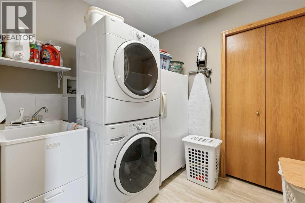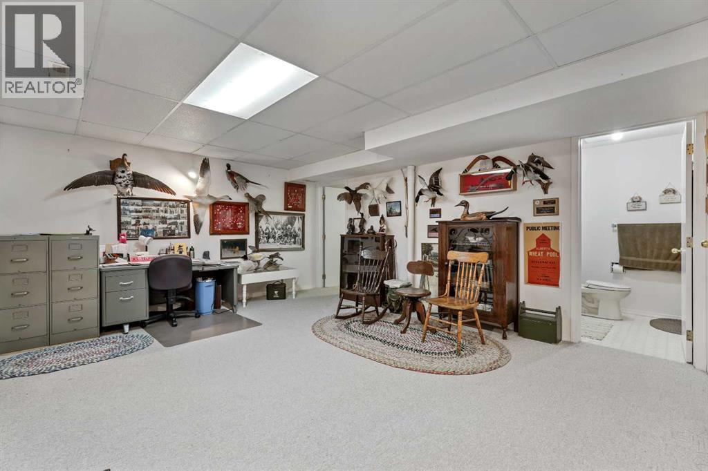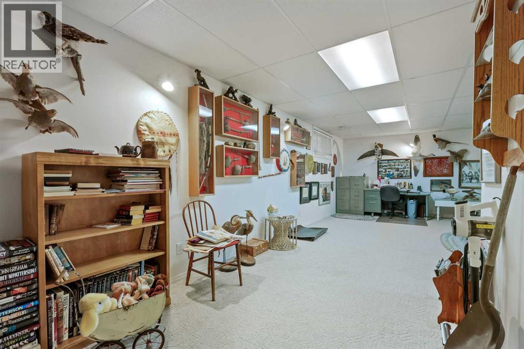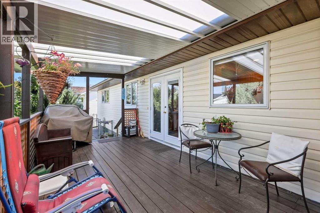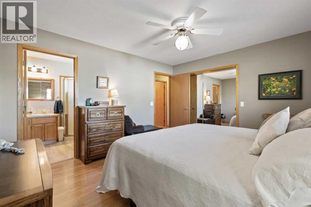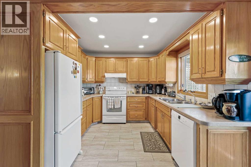 Move in ready, Park-Facing Bungalow with RV Parking & Fully Developed Basement! Experience the perfect blend of functionality, comfort, and convenience in this lovely bungalow, ideally situated directly across from a park in the mature neighborhood of Green Meadow. Complete with a Double Attached Garage, this home is ready for your touch! Step inside the main level to find a bright, open-concept living and dining area, accented by soft neutral tones and anchored by a cozy gas fireplace. The kitchen boasts generous cabinet and prep space, connecting easily to the dining area and an exceptional covered back deck—perfect for grilling and entertaining. A flexible area in the kitchen is ideal for a breakfast bar, coffee station, or a dedicated homework area. This level features three well-proportioned bedrooms, including the private Primary Suite with its own three-piece ensuite. A full four-piece family bathroom and a highly practical main-floor laundry room (with stacked washer/dryer, utility sink, and freezer) complete the 1395.29 sq ft. main level living. The fully developed basement is an exceptional extension of the home, offering superb utility and entertainment space. It features two massive rec. rooms for casual living and media, a dedicated large at-home work area, and ample storage. Guests will love the private fourth bedroom with a huge walk-in closet and a nearby three-piece bathroom. The exterior is designed for easy living, thoughtfully landscaped with low-maintenance front yard, fully fenced back yard with garden shed, underground sprinkler system, and back alley access to graveled parking area large enough for RV. Located close to George Freeman school and SMP Sports, as well as the beautiful walking paths along the canal, you are minutes to all of Strathmore's amenities. Don't miss this opportunity! (id:6769)