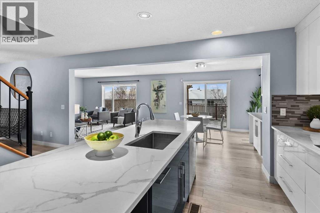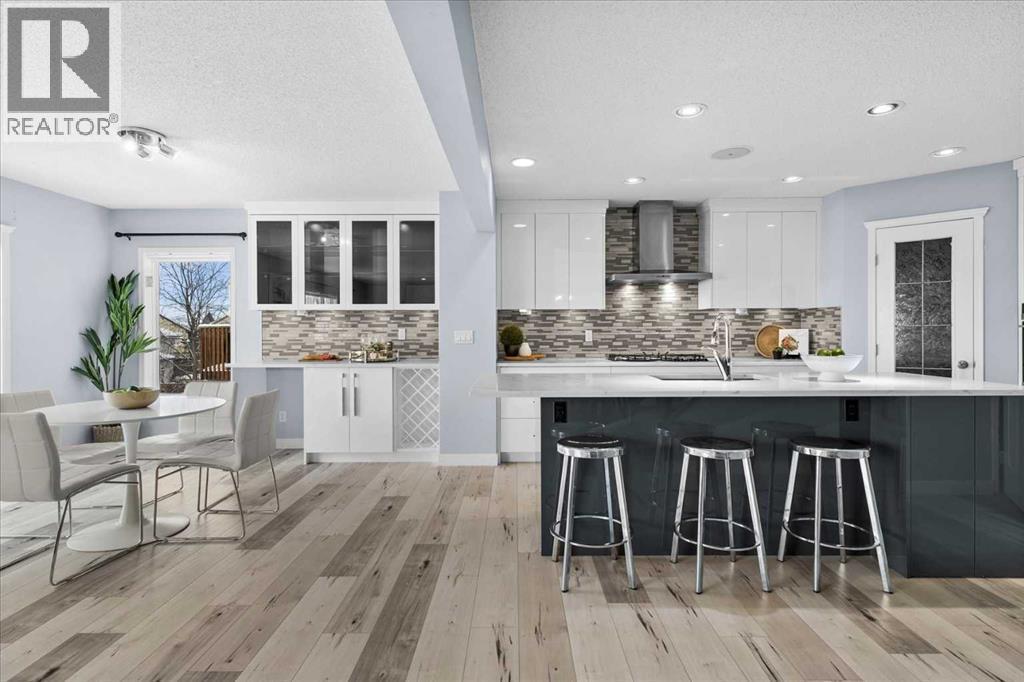 Nestled in desirable Rocky Ridge, this beautifully updated two-storey walkout invites you into a lifestyle defined by comfort, elegance, and connection to Calgary’s northwest landscapes. With over 3,200 sq. ft. of developed and lovingly maintained living space, four bedrooms, and three and a half bathrooms, this residence blends modern upgrades with thoughtful design, creating a home that feels both luxurious and welcoming from the moment you step inside. The main level showcases a fully renovated kitchen that serves as the heart of the home. Redesigned with quartz countertops, full-height backsplash, custom cabinetry with pull-out drawers, premium stainless-steel appliances, and a built-in wall oven, it offers an elevated space for cooking, entertaining, and gathering. The kitchen opens to a bright dining nook and a warm family room centered around a gas fireplace, forming an inviting setting for everyday living. At the front of the home, a second living room and a formal dining area add sophistication and versatility, ideal for hosting holiday dinners, celebrations, or intimate evenings with friends. A stylish 2-piece powder room and a functional mudroom with laundry and garage access enhance the convenience of the main floor. Upstairs, the primary retreat is designed for relaxation, capturing calming mountain views that shift beautifully with each season. The fully renovated 5-piece ensuite evokes a spa-like atmosphere with its thoughtful finishes, offering a peaceful escape at the end of the day. Two additional bedrooms and another full bathroom complete the upper level, providing excellent comfort for family or guests while maintaining a sense of privacy and balance throughout the floor. The fully developed walkout basement extends the home’s luxurious feel with a spacious media room featuring built-in cabinetry, a wet bar with sink, and a second gas fireplace. A dedicated games area adds versatility, while an additional bedroom and full bathroom make this leve l ideal for hosting, multigenerational living, or weekend visitors. Large windows and direct yard access enhance the sense of openness and connection to the outdoors, creating a warm and inviting extension of the living space. Outdoor living is exceptional, with both an upper deck and a lower patio equipped with gas lines for year-round grilling, heaters, or fire features. The walkout design provides a seamless transition to the yard and invites you to relax, entertain, and enjoy the peaceful surroundings, whether savoring quiet mornings or gathering with friends on warm summer evenings. Living in Rocky Ridge means embracing a highly desirable community lifestyle, quiet streets, scenic pathways, stunning natural outlooks, and access to the Rocky Ridge Ranch amenities including tennis courts, playgrounds, and recreational programs. Proximity to the C-Train, schools, parks, shopping, and the striking foothills of Calgary’s northwest enriches everyday life, offering both convenience and a sense of retreat. (id:6769)