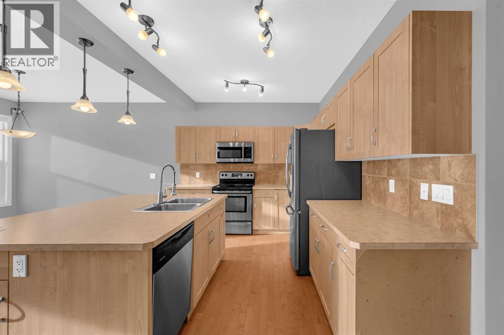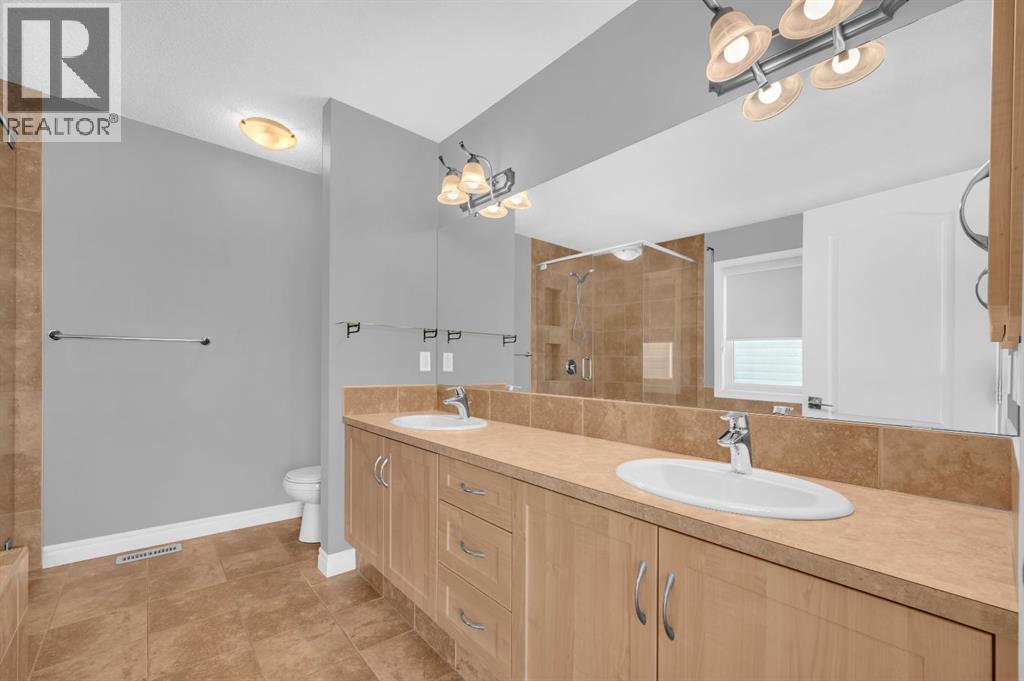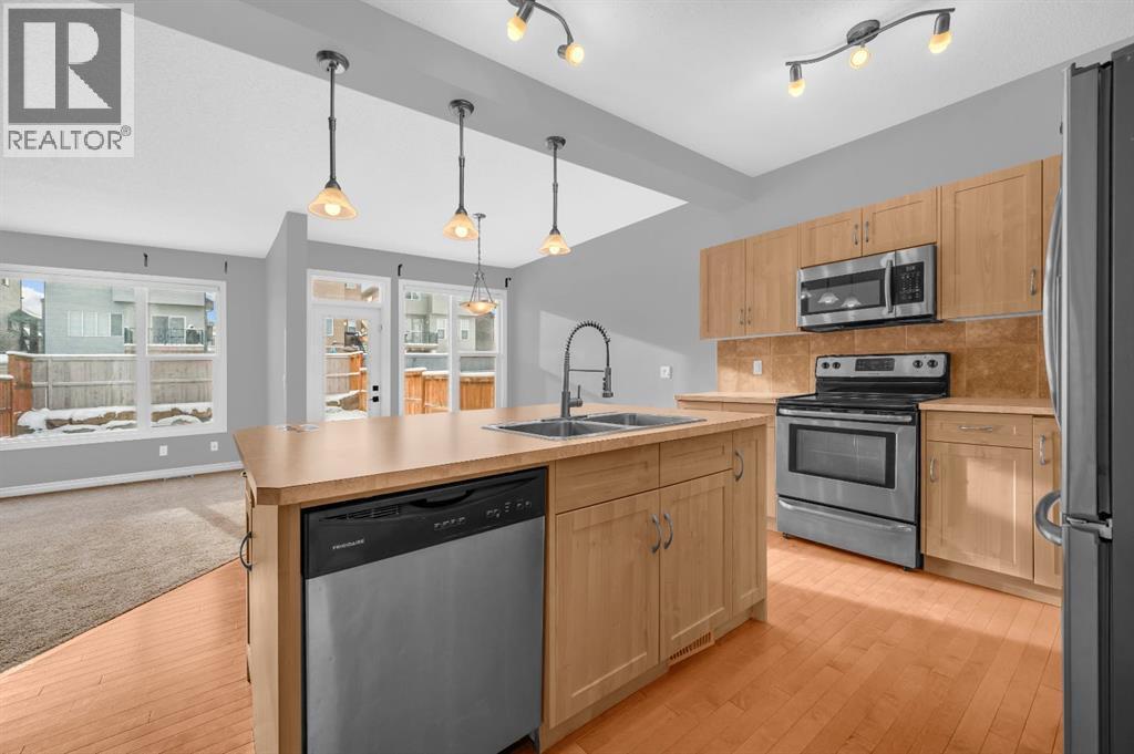 FRONT ATTACHED GARAGE | 2,000sqft + | BONUS ROOM | SOUTH FACING BACKYARD | 3 BEDROOM + 2.5 BATHROOM | Welcome to this inviting and thoughtfully designed 3 bedroom, 2.5 bathroom home located in the highly sought-after community of Hillcrest. From the moment you step inside this 2,000+sqft home, you’re welcomed by a bright foyer that opens into a spacious main level featuring 9 ft ceilings, creating an airy and comfortable atmosphere throughout. The open-concept layout includes a warm and inviting living room highlighted by a cozy fireplace, a well-planned kitchen with plenty of cabinetry and counter space, and a generous dining area perfect for family meals or hosting guests. Large patio doors provide an easy transition to the sunny south-facing backyard, offering an ideal space for summer barbecues, relaxation, or play. Upstairs, the thoughtfully designed layout continues with a beautiful primary suite featuring three large windows that fill the room with natural light, a spacious walk-in closet with its own window, and a well-appointed 5-piece ensuite complete with a soaker tub, separate shower, dual sinks, and a private water closet. The upper floor also includes a convenient laundry room, a large bonus room with an elegant tray ceiling that’s perfect for movie nights or a home office, two additional comfortable bedrooms, and a full 4-piece bathroom. Perfectly situated within walking distance to schools, parks, pathways, playgrounds, and the community pond, this home offers both convenience and a family-friendly lifestyle. Shopping, dining, and everyday amenities are just minutes away, and with quick access to Highway 2, commuting is easy. This Hillcrest home combines comfort, functionality, and a fantastic location—an excellent choice for families and professionals seeking a well-rounded home in a vibrant community. (id:6769)