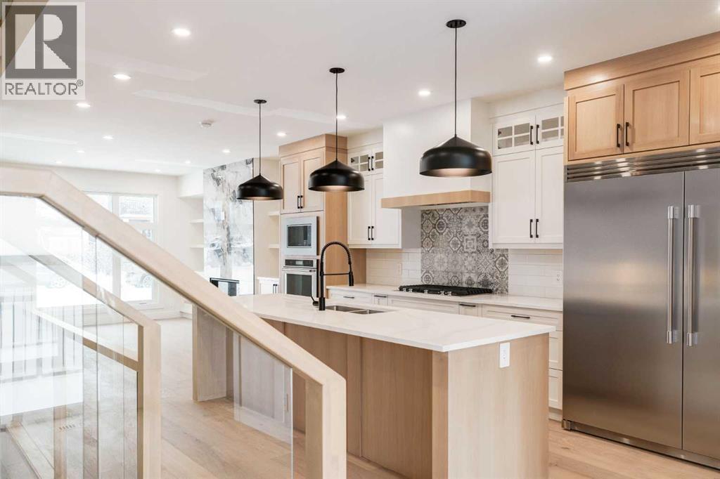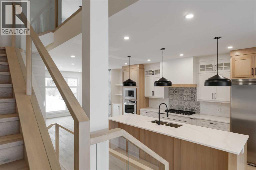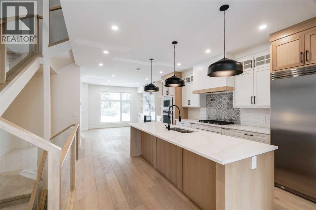 Priced to Sell! Over 3,300 livable square feet in this beautiful, brand new, 3-storey infill in the heart of the Killarney! With 5 bdrms + 4.5 baths, high ceilings, engineered hardwood, upgraded appliances and quartz countertops throughout this property offers so much! Walk into the spacious Main Foyer entrance, with custom closet, a 2-pc bath and impressively open floor plan; with Living Room cleverly located at the front. Imagine cozying up and relaxing next to the gas fireplace and built-in cabinetry with a good book. The nearby Kitchen features White Oak with large, long, island for extra seating and a separate pantry for extra storage. Here you'll also find higher end, stainless steel appliances including a built-in oven, microwave, dishwasher, gas cooktop and huge, commercial grade, fridge+freezer! The Dining Room features space to eat and entertain and a sliding patio door leads out to the rear deck - for extended seasonal living space. There's also a clever mudroom with storage space for all of your seasonal items, and a custom bench as well. Heading up to the 2nd floor, the stairs feature engineered hardwood and a glass railing, and you'll also find 3 spacious bedrooms and 2 elegant bathrooms. The Primary bedroom also includes a 5-pc ensuite spa bath with dual vanities, lavish soaker tub, stand up shower, a huge walk-in closet, and a balcony. The 2 other bedrooms, one with another beautiful walk-in closet, also share a common 3-pc bath. You'll also find located on the Laundry room with built-in sink and cabinetry here as well. On the 3rd floor you'll find more great living space in the Family Room with nearby balcony, and another bedroom with its own walk-in closet and a 3pc bath. The fully-developed Lower level has an additional bedroom, a den, a Rec room with wet bar and there's another 3-pc bath. Heading outside, you'll find the fenced backyard and room for Spring/Summer BBQ's, along with the detached double garage. This property shows well and is clos e to so much! (id:6769)