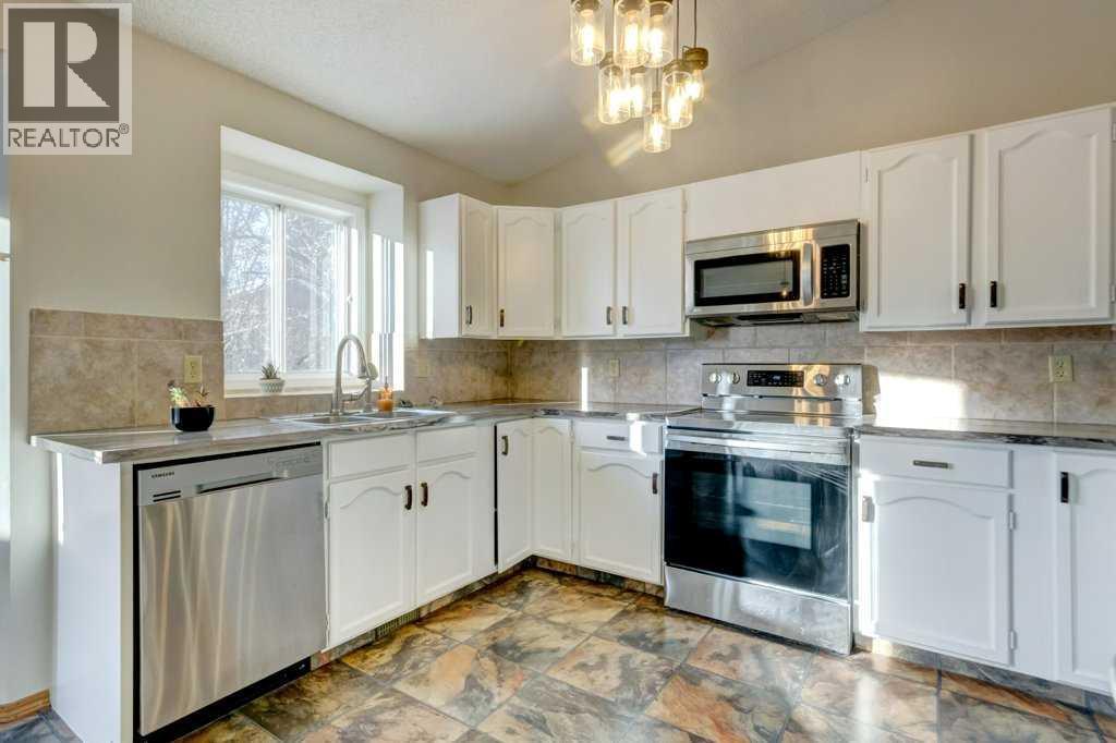 Tucked into the heart of Sundance, this beautifully maintained 4-bedroom, 3-bathroom 4-level split presents a rare opportunity to own a custom-built home in one of Calgary’s most cherished lake communities. With year-round access to Sundance Lake and Park, and close to schools, scenic Fish Creek Park, Sikome Lake, and the CTrain, this location offers the perfect balance of nature, family living, and urban convenience.Inside, you’re greeted by vaulted ceilings and large windows that fill the main living areas with natural light. The living and dining spaces feel airy and open, setting the tone for gatherings and daily moments alike. The kitchen is both stylish and functional, featuring stainless steel appliances, elegant pendant lighting, a walk-in pantry, and a large west-facing window that frames the backyard with its mature trees and dappled sunlight. Step out onto the raised deck for your morning coffee or unwind with dinner outdoors. From the kitchen, you can look down into the cozy family room, a warm and welcoming space anchored by a brick wood-burning fireplace, custom built-ins, and patio doors that lead directly to the backyard. There’s also a rough-in for a wet bar, perfect for future entertaining.A versatile bedroom on the main level offers the perfect setup for a home office, guest room, or play space, and the combined laundry and mudroom keeps everyday routines tidy and efficient. Upstairs, the spacious primary bedroom is a true retreat, featuring a beautifully lit ensuite with thoughtful finishes and a walk-in closet. The second and third bedrooms have been combined into one oversized space, ideal for siblings, a shared bedroom and playroom, or a dreamy teen suite, and can easily be converted back into two separate rooms. A full 4-piece bathroom serves this level.The finished basement expands your living space with a charming gas fireplace with three-sided glass doors, a built-in bed nook that adds character and function, custom shelving, a pool tab le, and a clever under-stair storage area. A large crawl space offers even more room for seasonal items and keepsakes.Outside, the private backyard is a true sanctuary. Surrounded by mature trees, it features two patio areas, a pergola for shaded lounging, and a hot tub for year-round relaxation. A laneway behind the home adds flexibility for access or future development. Other thoughtful features include a newer roof and furnace (2018), LEVOLOR Blinds, a vintage intercom system, VACUFLO central vacuum, and an attached double garage.Priced incredibly well for a lake-access home in a high-demand community, this property offers timeless comfort, room to grow, and the chance to make it your own. Come experience the warmth and charm of Sundance living. Book your private showing today. (id:6769)