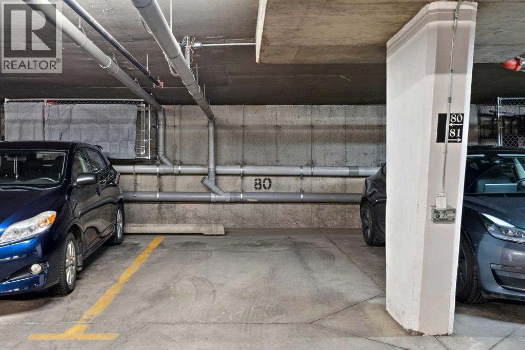 Exceptional value for this spectacular Top-Floor Penthouse in the Pavilions of Eau Claire with unparalleled prime northwest corner location! Outstanding condominium home with 2 UNDERGROUND TITLED PARKING STALLS, air conditioning, loft, soaring-high cathedral ceilings, many large bright corner windows, plenty of natural light and thoughtfully designed open-concept layout that seamlessly connects the kitchen, dining and living areas making it perfect for entertaining or home relaxation! Beautifully appointed and upgraded condo with hardwood & tile floors, granite counter-tops throughout, custom privatized Hunter-Douglas blinds with black-out features and both bathrooms have been completely renovated. Large northwest corner balcony with BBQ gas-line, brand new air conditioning unit, partial views of Peace Bridge and handy secure storage room. Spacious primary bedroom has large bay window, 3 pce ensuite bathroom with rain shower, walk-in closet and guest bedroom is conveniently located next to 4 pce main bathroom. Enjoy the corner gas fireplace and large versatile loft overlooking the living area that can be used as a family or recreation room! Comes with large separate laundry room with storage, European washer/dryer combo, under-stairs storage and choice parking stalls #80, #134(with storage cage) both conveniently located next to the elevator! This special home boasts the largest floor plan, finest location and best parking stalls in the building!! The ever popular Pavilions of Eau Claire offers a secure entrance lobby with seating area, main floor party/billiard room, secure underground titled parking & bike storage and visitor parking on the south side of the building. Exceptional heart of Eau Claire location nestled along the south bank of the Bow River, close to the world-class pathway system, beautiful Prince's Island Park and walking paths, close to great restaurants and fine dining, Buchanan's chop house & whisky bar is across the street, half-block to the ou tstanding Alforno bakery & cafe and just a short walk to Light Rail Transit and transportation, Peace Bridge, Kensington shops, Safeway and Calgary's vibrant city center. Enjoy downtown urban living at it's finest! (id:6769)