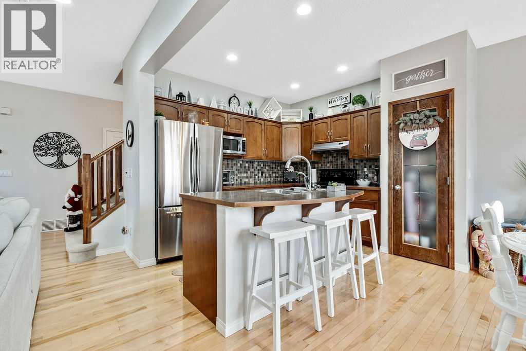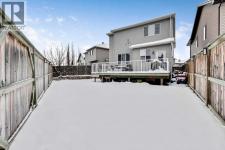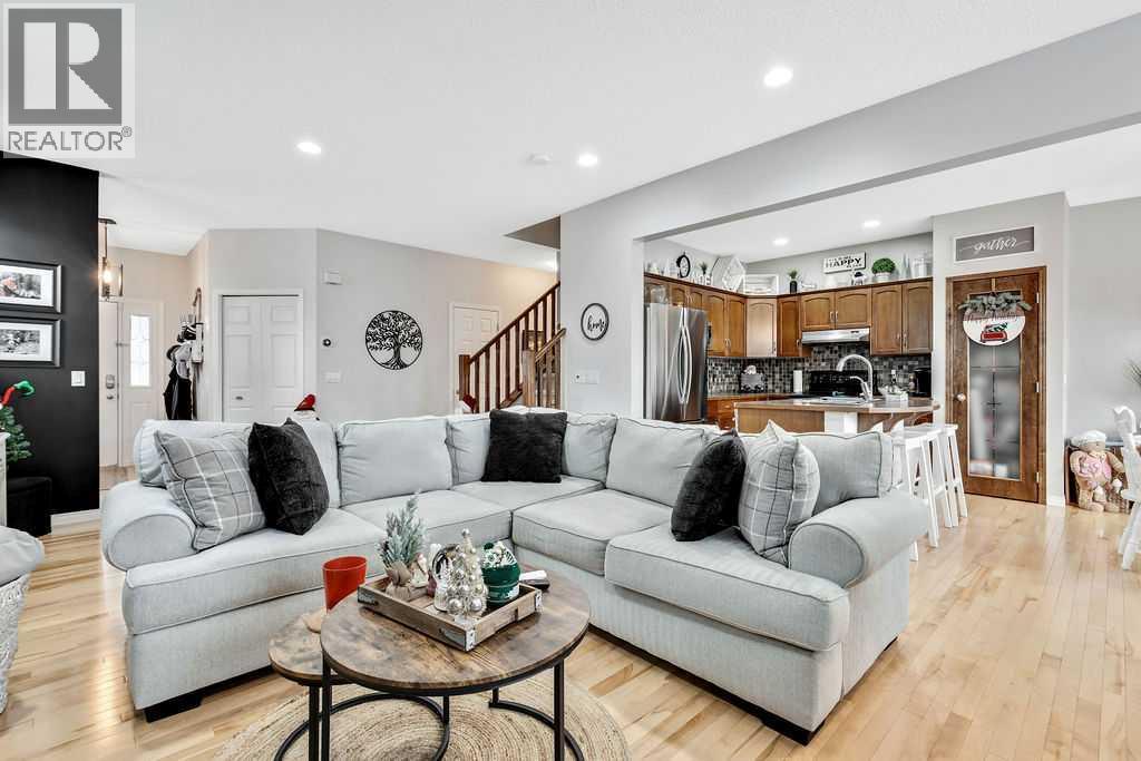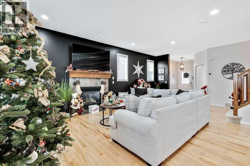 Welcome to 155 Cimarron Grove Circle, tucked away on a quiet street in the popular community of Cimarron. This well-designed 4-bedroom, 4-bathroom home offers the perfect blend of style and functionality. With real hardwood flooring, comfy carpet, and tiled bathrooms, this family home is sure to impress.The main floor features a bright, open-concept layout. The kitchen showcases maple cabinetry, Stainless steel appliances and a natural slate backsplash, flowing seamlessly into the inviting living room, complete with a cozy gas fireplace. A convenient 2-piece bathroom finishes off this level.Upstairs, the spacious primary bedroom includes a generously sized ensuite, creating a private retreat. Upper-floor laundry adds great convenience. 3 additional bedrooms, a bonus room/loft, and a 4-piece main bath complete the second level!The fully finished lower level offers even more living space with a large family room and another 4-piece bathroom. The heated double garage ensures year-round comfort.Outside, enjoy the sun on the large deck overlooking the ample pie-shaped yard—perfect for kids, gardening, or a future firepit area. With back-lane access, there’s room to store extra toys if needed.This beautifully designed home also features central air conditioning, offering everything you need in a fantastic location. (id:6769)