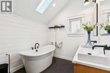 OPEN HOUSE SUNDAY DEC 7th 1-3pm. BEAUTIFULLY RENOVATED CHARACTER HOME in a cul-de-sac location across from a green space with tot lot and just steps from the Inglewood 9th Avenue Village. 33’ wide lot. Thoughtfully modernized, the home perfectly blends original charm with modern comfort, safety, and efficiency. Also features a TRIPLE GARAGE and a LEGAL SUITE. Major updates in recent years include new electrical, mechanical, and plumbing systems, a new roof and all new windows and doors in both the house and garage. The front foyer welcomes you with built-in seating, storage and a glass door to the main hall. Sunlight flows throughout the comfortable and easy-to-enjoy open-plan living spaces. The inviting living room encourages relaxation around the electric fireplace and TV with a custom media cabinet providing discreet storage for books, games, and toys. The gorgeous kitchen is designed for everyday living and entertaining family and friends. It showcases sparkling quartz counters and backsplash and black stainless-steel appliances with extensive cabinetry and workspace. The large island doubles as a breakfast bar and incorporates the home’s original brick chimney for a touch of history. Completing the main level are a luxurious bath with shower, a convenient laundry room with storage, and a charming under-stair nook—ideal for a kids’ play space or cozy pet corner. Upstairs, you'll find three bright and spacious bedrooms, including the primary retreat with room for a king bed, dual walk-in closets and peaceful park views. The stunning 5-piece bathroom includes heated floors, a skylight, a double vanity, a freestanding tub and a separate walk-in shower. The legal basement suite offers flexibility—use it as additional family living space or for rental income. It features its own entrance, Roxul soundproofing insulation and a separate heating system. Note the large living room with TV, bright kitchen with stainless appliances (gas stove and “farmhouse” sink), bedroom and stylish bathroom with in-floor heating. An HRV unit together with the electric heat keeps the space fresh and comfortable. Central AC and alarm system. The private, fully fenced backyard is flat with mature landscaping. The insulated and heated triple garage offers ample workspace thanks to built-in shelving. Neighbourhood amenities include tennis courts, scenic river pathways, the bird sanctuary, and, of course, the unique collection of shops, restaurants, cafes, fitness and services of the 9th Avenue Village. Schools and transit are also close by. (id:6769)