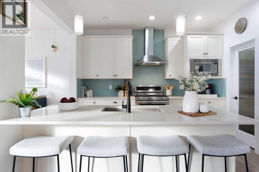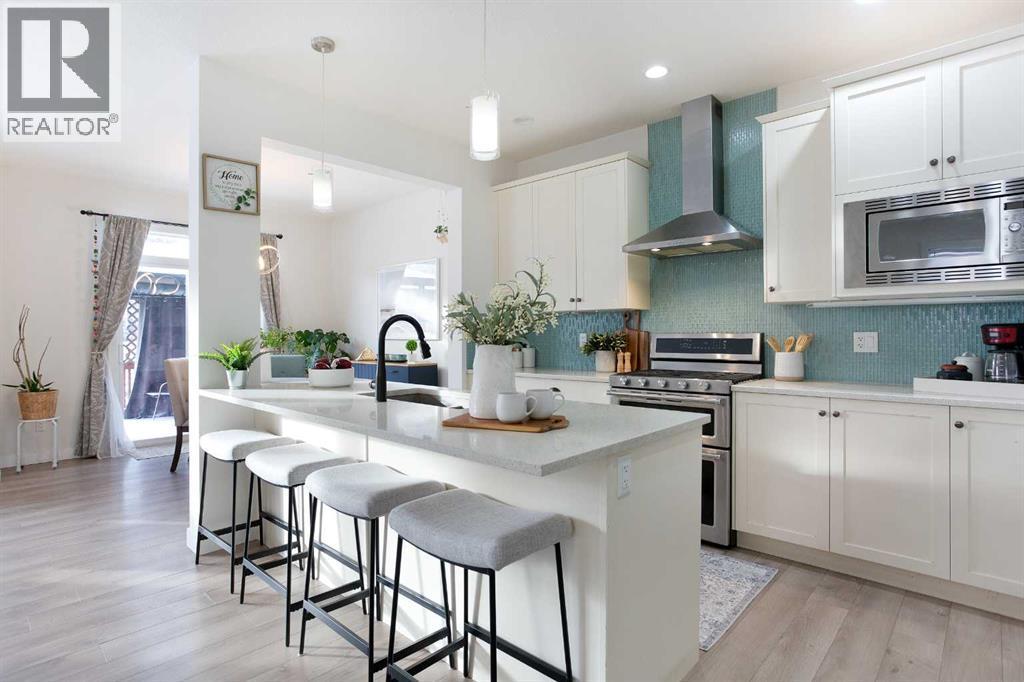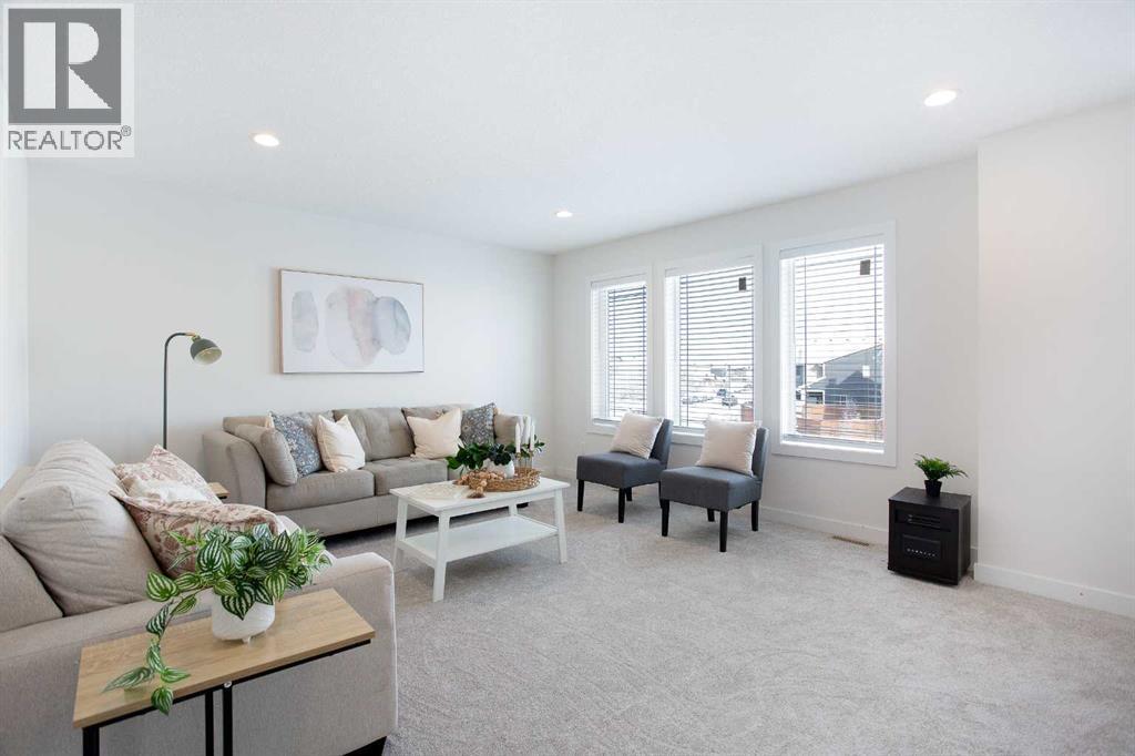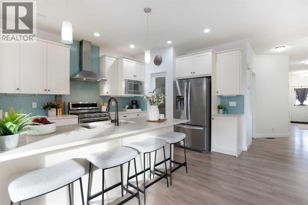 Welcome home to your 2-storey family sanctuary in the heart of highly sought-after Bayview. This spacious home, boasting 5 bedrooms and 3.5 bathrooms across an impressive 3,000 sq ft, is situated on a rare, oversized 4,525 sq ft pie-shaped lot—the ultimate blend of convenience and tranquility. From the moment you walk through the door, the home feels expansive and refined, thanks to nine-foot ceilings and a sophisticated palette across three fully finished levels. The open-concept main floor, anchored by a beautiful gas fireplace, is where life happens. Chefs will adore the gourmet kitchen, which features creamy white cabinetry, a luxurious double wall oven, a powerful gas range, and a brilliant walk-through pantry. Plus, a dedicated main-floor den with custom built-ins ensures you have the perfect quiet spot for working. Upstairs is designed entirely for rest and retreat. The spacious upper-level features new carpeting, generously sized bedrooms, with an expansive primary suite with a spa-like bath, including separate vanities and an oversized glass shower, plus a walk-in closet. 2 additional bedrooms, 4-piece main bathroom and a convenient laundry room, are all located on the 2nd floor. Additionally, the smart layout even features a large family room - ideal for kids' play or family movie nights, that can easily transform into an enormous 5th bedroom! To top it all off, the finished lower level provides the ideal setup for guests or extended family, offering an additional bedroom, an oversized recreation room, a 4-piece bathroom, ample storage spaces. With central air conditioning and a widened driveway, this home truly delivers modern luxury without compromise, but the true jewel is outside. Your massive, private yard is an entertainer's masterpiece! Picture yourself hosting effortless parties on the majestic two-tier deck, sheltered by a gazebo, and complete with a natural gas connection for the BBQ. There's a designated spot for your hot tub and a separate area for a cozy fire pit. Located in the family-friendly community of Bayview, this peaceful haven is steps from everything—parks, walking paths, canals, great schools, shopping, and easy access to Deerfoot! Seamlessly blending style, functionality, and ultimate comfort, it’s time to experience modern living at its finest, and it's completely turn-key! Don't miss this opportunity; contact us to arrange your private showing today! (id:6769)