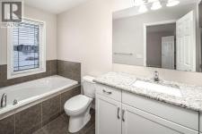 DUAL MASTER BEDROOMS | PARK-FRONT LOCATION | DOUBLE ATTACHED GARAGE | NO CONDO FEES!Pride of ownership shines throughout this immaculate home, lovingly maintained by its owners. Offering amazing curb appeal, the property features a zero-maintenance fenced front yard with artificial turf, perfectly positioned directly across from a beautiful park, green space, and a toboggan hill. Step inside to a bright and welcoming foyer with a picture-window front door. The spacious living area boasts a fresh, modern colour palette, laminate flooring.. The open-concept layout flows seamlessly into the chef’s kitchen, complete with a large eat-up island, contemporary cabinetry, granite countertops, and abundant storage. The dining area easily accommodates a large table with additional space for a hutch or buffet. A discreet half bath and access to the insulated and drywalled double attached garage (fits a large truck!) complete the main floor. Upstairs, a versatile loft offers the perfect space for a home office, playroom, or gym and provides access to the spacious 185 sq ft upper deck, ideal for outdoor dining and relaxing. The upper level features two generous master suites, each with its own walk-in closet and private ensuite. The primary ensuite includes quartz countertops, a soaker tub, and a walk-in shower. The second ensuite offers a walk-in shower, granite countertop, and tile flooring. Completing the upper level is a rare walk-in laundry room and central vacuum system. The basement is bright and open with a large egress window and bathroom rough-in, ready for future development. Situated in a highly desirable, family-friendly community with excellent access to multiple playgrounds and beautiful pathways, including routes through the nearby Environmental Reserve leading to Chinook Winds skate park, splash park, ball diamonds, playgrounds, and rink. Within walking distance and school boundaries for Windsong Heights (K–8). Shopping and dining at Coopers Town Promenade are ju st minutes away, with convenient access to 8th Street and the 40th Avenue connector for easy commuting to Calgary. An exceptional, move-in-ready home in a fantastic location—perfect for families, professionals, or investors alike (id:6769)