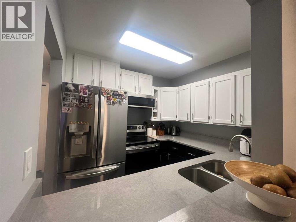 Discover exceptional value in this top-floor, corner-unit 2-bedroom, 1-bathroom condo in Brookpark Gardens, located in the family-friendly community of Braeside. This home is ideal for both investors and first-time buyers, offering a bright, comfortable layout and a series of thoughtful updates that enhance style and convenience.Inside, you’ll find new flooring, including new carpet and new ceramic tile. The kitchen features new appliances, refinished cabinets, and new quartz countertops, creating a clean and modern look. The bathroom also includes a new quartz countertop. Additional features include laminate flooring throughout, a microwave with hood fan, and a refrigerator with water and ice dispenser.Perfectly located, this property is just a 5-minute walk to the Southland Leisure Centre, a 4-minute drive to South Glenmore Park, and only 2 minutes by car from the Braeside Tennis Courts, Braeside Park, and nearby supermarkets. Public Transport, shopping, and schools are also close by, making day-to-day living easy and accessible.The unit comes with an assigned parking stall.Whether you're looking for your first home or a strong investment opportunity, this condo delivers comfort, convenience, and an unbeatable location. (id:6769)