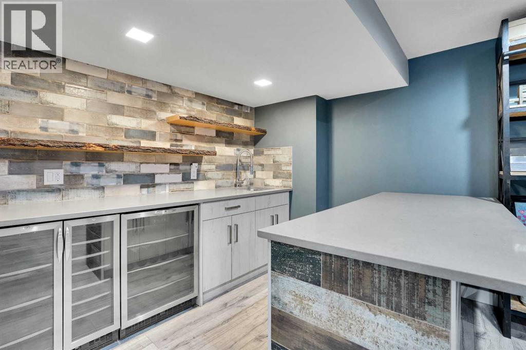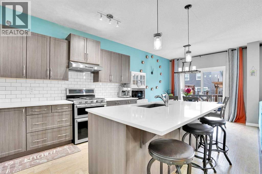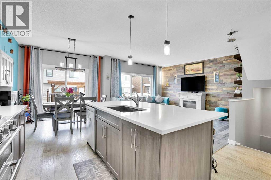 WOW! AMAZING OPPORTUNITY! to own a truly remarkable 4 BED 3.5 BATH with over 2260 SQFT of developed living space property in one of the Airdrie’s most sought-after communities—‘Kings Heights’. Thoughtfully customized from top to bottom, inside and out, this beautifully modernized two-storey home with a double attached garage stands out with its unique features and exceptional planning. Step inside '100 Kingsbury Close', through the charming covered veranda and into a spacious front entry with a coat closet. Continue past the stylish half bath to the stunning open-concept main floor, showcasing a fresh colour palette, upgraded lighting, LVP flooring for all floors and 9’ ceilings. The chef’s kitchen is a showstopper, featuring: Granite under-mount farmhouse sink, Gas stove with oven, Heavy duty newly installed hood fan, Bosch dishwasher, Large island with eating bar, Abundance of soft-close cabinetry, Quartz countertops and Walk-in pantry with pocket door and motion-sensor lighting! The expansive living room is brightened by large windows and accented with a rustic feature wall and shelves, fireplace, while the generous dining area provides access to the west-facing backyard retreat. Perfect for entertaining, this outdoor space includes a two-tier deck, Pergola, built-in Bench seating, Fire Pit, plenty of green space, fully fenced and gated for excellent privacy!! Upstairs, you’ll find a bright and inviting primary suite featuring stunning feature walls, a walk-in closet, and a luxurious 5-piece ensuite complete with dual sinks, a soaker tub and tiled shower. The upper level also offers other three additional spacious bedrooms, a 4-piece main bath, and a perfectly sized laundry room equipped with a pedestal sidekick washer. FINISHED BASEMENT—a beautifully designed space loaded with upgrades! Enjoy a gorgeous wet bar with two beverage coolers, raised eating bar, ample cabinetry, and live-edge shelving. The basement also includes a generous living area with built-i n SPEAKERS, a stunning 3-piece bathroom with an oversized tiled walk-in shower, HEATED FLOOR, and excellent storage options. This home continues to impress with approximately $25,000 in premium upgrades, including: Professionally installed heater in double attached garage with abundant shelving, Heavy duty hood fan in the kitchen, Central A/C, Heated floor in the basement washroom, LVP flooring all around (except basement stairs), Two outdoor storage sheds, Two-tier deck with pergola and a seating bench and Watts Exterior Bluetooth lighting (NO MORE Holiday light hassle!)Bothered from on-road traffic noise? Welcome! This property is located in a quiet close (CL)—no through traffic—this home is perfectly positioned for families. It is just steps away from schools such as Heloise Lorimer (Eng)/École des Hautes-Plains, skating rink, parks, walking trails to pond and three football fields. If you’re looking for a home full of character, thoughtful upgrades, and unique features, this one is truly a must-see! (id:6769)