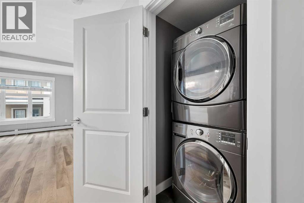 Welcome to this immaculate one-bedroom-plus-den condo in the highly sought-after community of Mahogany, celebrated for its vibrant outdoor lifestyle. Perfectly positioned with full lake access, this professionally renovated unit offers an ideal blend of comfort, style, and convenience. Upon entering, you’re greeted by contemporary finishes, including brand-new waterproof laminate flooring throughout and tile in the bathroom. The kitchen is equipped with all the essentials, featuring a breakfast bar, upgraded modern cabinetry, quartz countertops, and stainless steel appliances.Freshly painted from top to bottom, the entire space feels bright, clean, and inviting. The primary bedroom is spacious and can comfortably accommodates a king-sized bed. The generous den serves as a versatile multi-purpose room—ideal as an additional bedroom, office, workout area, or extra entertaining space. The unit also includes in-suite laundry and underground TITLED parking with a storage locker. Ideally located just steps from Mahogany West Beach, Mahogany Plaza, and the dining and entertainment at Westman Village, including Alvin’s Jazz Club and Chairman’s Steakhouse. The lake offers many year-round amenities such as swimming, skating, tennis courts, splash park, fishing, fitness areas, and more. With quick access to 52nd Street, Stoney Trail, Deerfoot Trail, and close proximity to schools, shopping, and the South Health Campus, this is an exceptional opportunity for first-time buyers, downsizers, or investors alike. (id:6769)