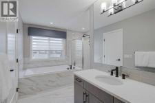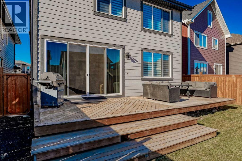 OPEN HOUSE SUNDAY DEC 14 (12:00-2:00pm). Welcome to this stunning executive home on a quiet street in the highly sought-after community of Mahogany, just a short walk to the lake. Built by Jayman Homes, this property offers 2,662 sq. ft. of impeccably designed above-grade living space and exceptional energy efficiency with six installed solar panels.The main floor impresses with rich hardwood flooring, recessed lighting, and a gourmet kitchen featuring high-end stainless steel appliances, dual ovens, a professional six-burner natural gas cooktop, and a dedicated wine fridge. The kitchen flows seamlessly into the dining area, warmed by a stylish electric fireplace.Upstairs, the layout is ideal for family living and privacy, offering four generously sized bedrooms and a spacious bonus room. This level is enhanced by central air conditioning and upgraded plush carpeting for year-round comfort. Modern mechanical systems include dual high-efficiency furnaces and an HRV system for optimal air quality.Outside, enjoy the beautiful cedar deck overlooking a level lot. The unfinished basement, with its large windows, provides excellent potential for future development.This is a truly turn key, premium property in one of Calgary’s most desirable lake communities. Short drive to the Brookfield Residential YMCA in Seton! (id:6769)
