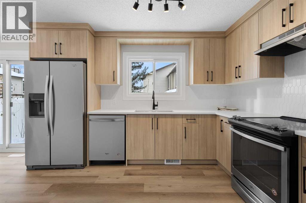 Welcome to this beautifully FULLY renovated unit located in a well-maintained complex in the desirable Deer Ridge neighbourhood, just minutes from Fish Creek Park and within walking distance to shopping and restaurants. Upon entry, you are welcomed into a bright living room with a large front window that fills the space with natural light. The main floor features a stunning NEW kitchen with modern cabinetry, * quartz countertops, a trendy backsplash, and * new light fixtures, seamlessly flowing into the dining area with patio doors leading to your private backyard. A * newly updated half bathroom and utility closet complete the main level.Upstairs, you will be impressed by the generous size of the primary bedroom, large enough to accommodate a bed along with a sitting area. Two additional well-sized bedrooms share a full 4-piece bathroom. The basement is accessed from the dining area and offers a family room, a hobby or office space, and a laundry area.The entire unit has been freshly painted and updated with NEW carpet throughout, NEW light fixtures, NEW backsplash, and NEW vinyl plank flooring, making this home truly move-in ready. Ideally situated close to schools, shopping, restaurants, and just a short distance to parks and nature pathways, this is the perfect place for those who love both convenience and the outdoors.Don’t wait—bring your furniture and start a beautiful new chapter in this lovely home. (id:6769)