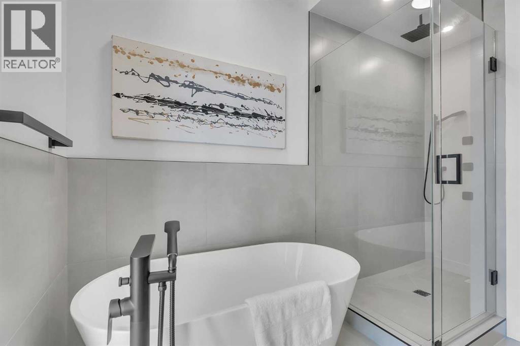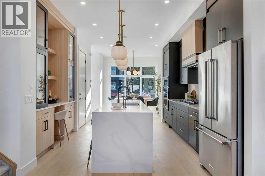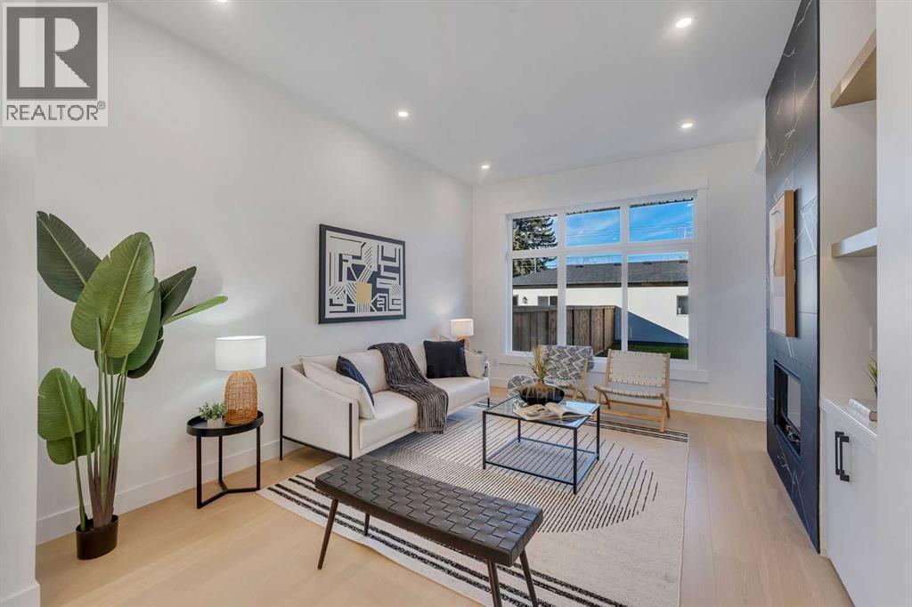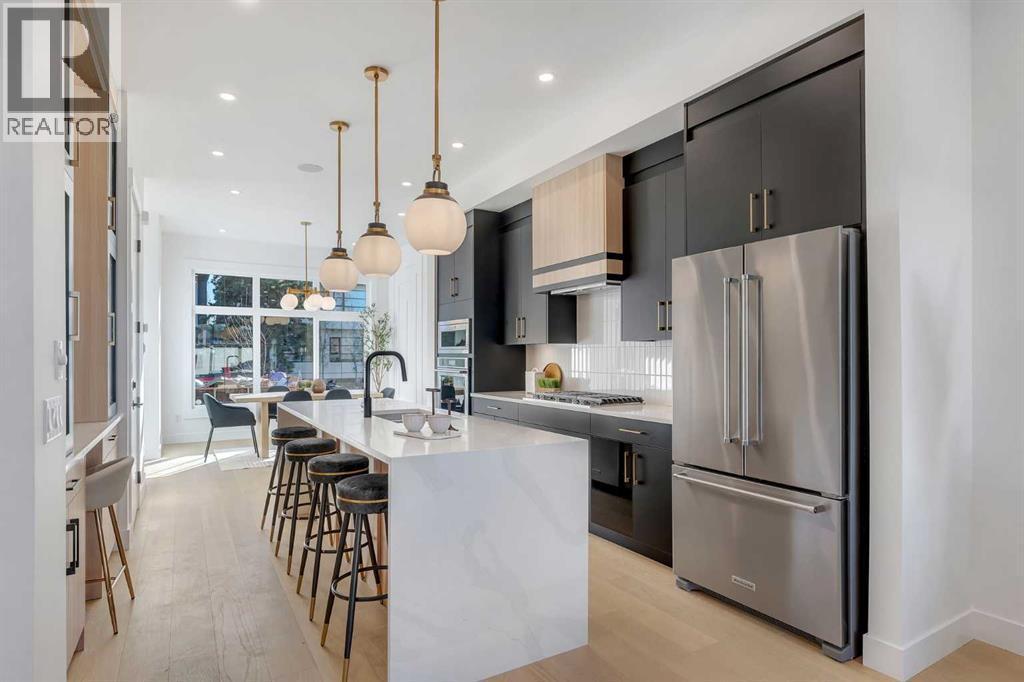Welcome to Winston Heights Mountview! This modern infill comes with a legal basement suite with its own entrance and offers over 2250 sq. ft. of finished space. It features 5 bedrooms and 3.5 bathrooms, with high-end finishes throughout. The main floor has 10’ ceilings, big windows, an open dining area, and a stylish kitchen with quartz counters, a large island, and KitchenAid stainless steel appliances. The living room includes a gas fireplace, built-in shelves, and access to the patio. Upstairs you’ll find the primary bedroom with a 5-piece ensuite and walk-in closet, plus two more bedrooms, a full bathroom, and laundry. The basement has 9’ ceilings and a fully legal 2-bedroom suite with its own kitchen, living space, and laundry—great for family or rental income. This home also includes a double garage, downtown views from the front, and an excellent location close to schools, parks, shops, and just minutes from downtown. One of biggest backyards in this area. (id:6769)