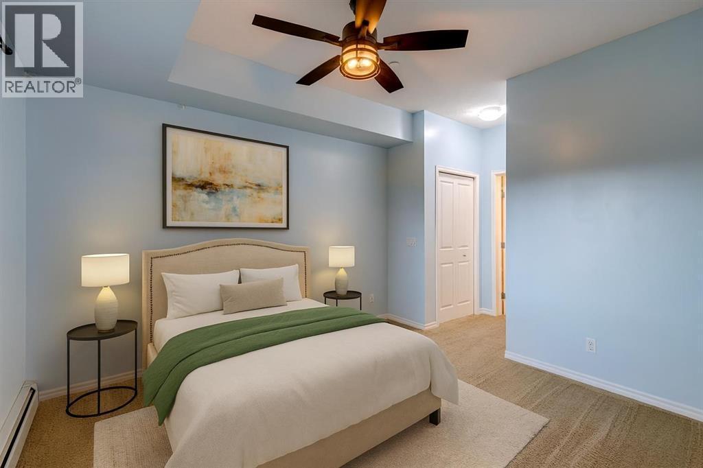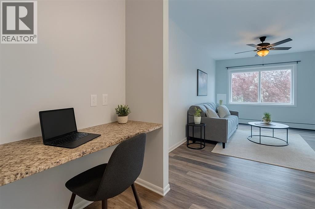 Incredible value in this beautifully updated 2-bedroom suite overlooking a serene, tree-covered courtyard. This sought-after floorplan features numerous upgrades, including modern ceiling fans and light fixtures, custom closets in the primary bedroom, freshly painted ceilings in the main living area, luxury vinyl plank flooring, and custom window blinds throughout.The stylish kitchen showcases granite countertops, a raised breakfast bar, and newer stainless steel appliances, all flowing seamlessly into the dining area, living room, and a convenient office nook. The bright and inviting living room offers access to the first of two spacious balconies—perfect for relaxing or entertaining.Ideal for families, roommates, or anyone seeking privacy, the two bedrooms are thoughtfully separated. The generous primary suite includes its own ensuite, while the second bedroom enjoys access to the second large, private balcony and is just steps away from the full main bathroom.This home includes two parking stalls (one titled and one assigned) plus an assigned storage locker. Walking distance to shops, restaurants, and everyday conveniences.A fantastic opportunity—shows beautifully! (id:6769)