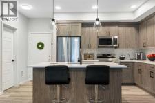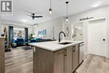 Step into comfort, style, and elevated living in this beautiful 2-bed, 2-bath condo in The Rise at The Parks of Harvest Hills. Built by Cedarglen Homes, and lovingly maintained by its original owners, this home stands out with premium upgrades and central AC for year-round comfort. From the moment you arrive, pride of ownership is evident. The welcoming entry leads into a bright, modern kitchen that makes both everyday cooking and hosting feel special. Featuring a large island with seating, quartz countertops, stainless steel appliances, and a stylish chevron tile backsplash that create a high-end look and feel. Plenty of cabinetry and a pantry give you the storage every homeowner wants without sacrificing clean, contemporary design. Luxury vinyl plank flooring runs throughout the main living spaces for durability and a modern finish. In the dining area, the builder-upgraded built-in adds character and practical storage, making entertaining effortless. The spacious living room has the perfect layout for relaxing, movie nights, or hosting game night with friends. Slide open the patio doors to your oversized private balcony. With room to lounge or dine, built-in exterior lighting, and a BBQ gas line ready to go, this becomes an outdoor extension of your home that you will love from morning coffee to summer evenings. The primary bedroom is tucked away on its own side of the home for privacy and peace. There is plenty of space for a king-sized bed and additional furniture, while the walk-in closet features custom built-ins designed to keep life organized. The 4-piece ensuite is bright, fresh, and calming. It feels like your own personal retreat at the end of a long day. Across the unit, the second bedroom offers flexibility for guests, a roommate, a nursery, or the perfect work-from-home office. The adjacent 3-piece bathroom includes a full-size walk-in shower with upgraded fixtures for a sleek and modern finish. Back near the entry, the laundry room truly sets this hom e apart. Builder-installed upper cabinets and extra shelving ensure everything has a place and stays clutter-free. A luxury rarely found in condo living. This space also doubles as your front closet with plenty of room for shoes and jackets. Your titled underground parking stall is conveniently just steps from the elevator, making grocery runs effortless. An assigned storage locker and secure bike storage are also included on the same lower level, giving you even more room for the things you love. You are perfectly positioned here. Minutes from the airport, close to Deerfoot and Stoney Trail, and a short stroll to restaurants, local shops, Landmark Cinemas, parks, tennis courts, and schools. Convenience and comfort come together seamlessly. Whether you are downsizing, investing, or purchasing your first home, this upgraded condo offers a level of quality and lifestyle that truly stands out.Welcome home to The Rise at The Parks of Harvest Hills. (id:6769)