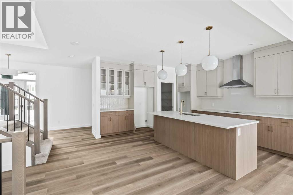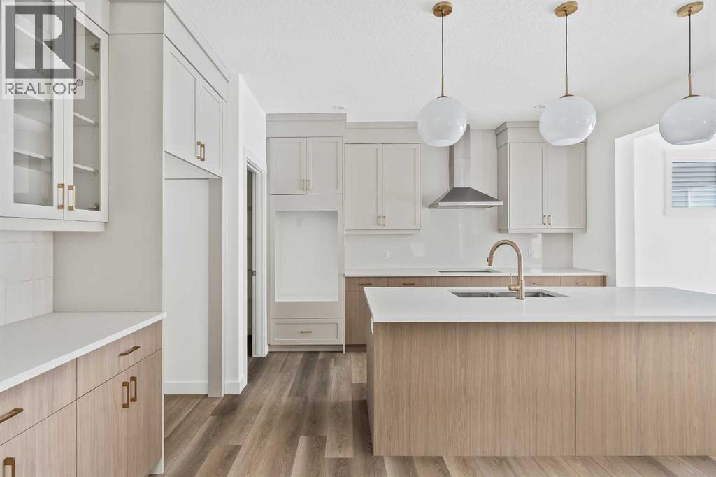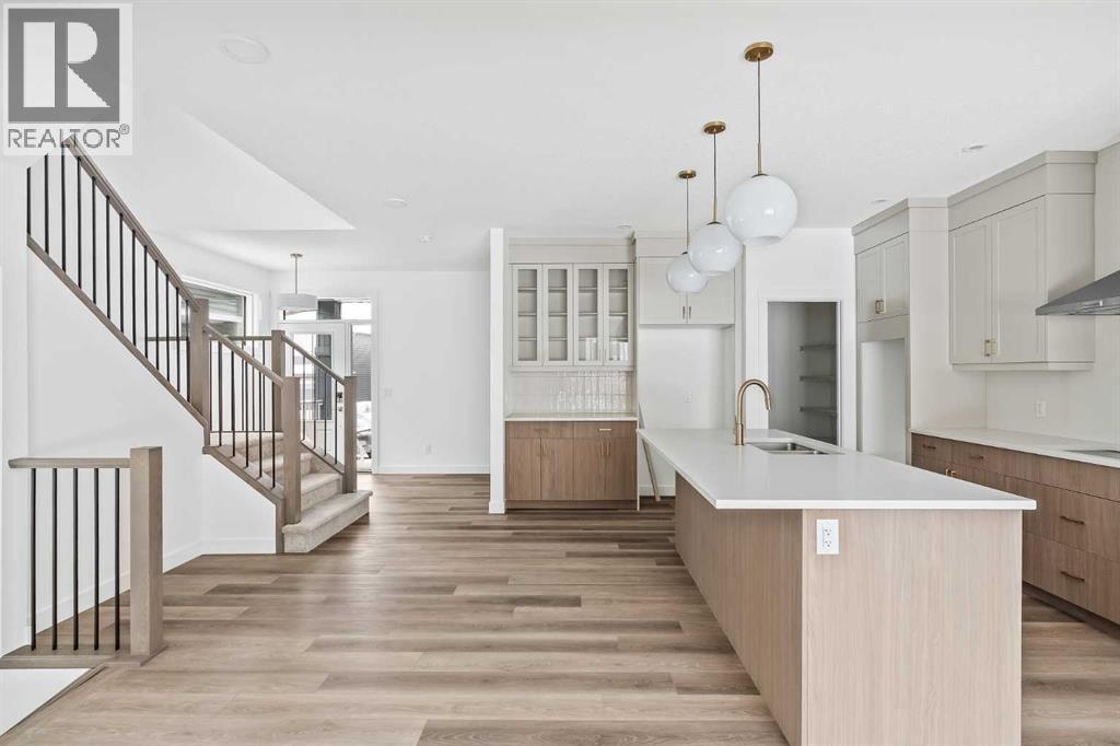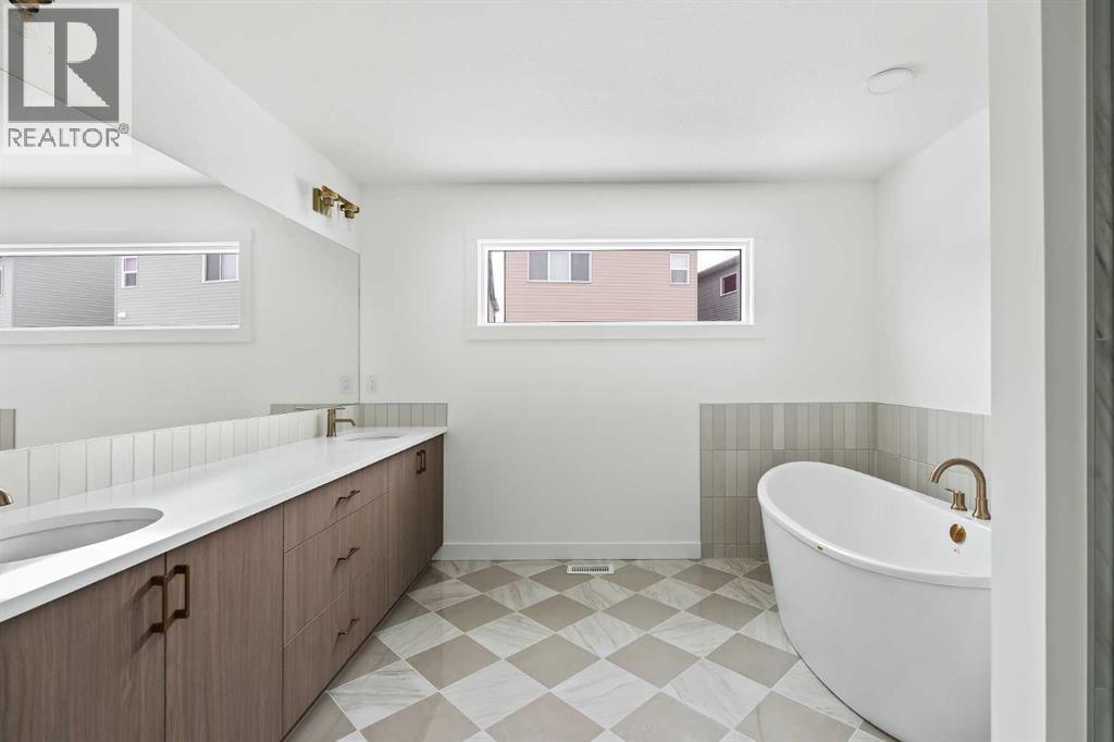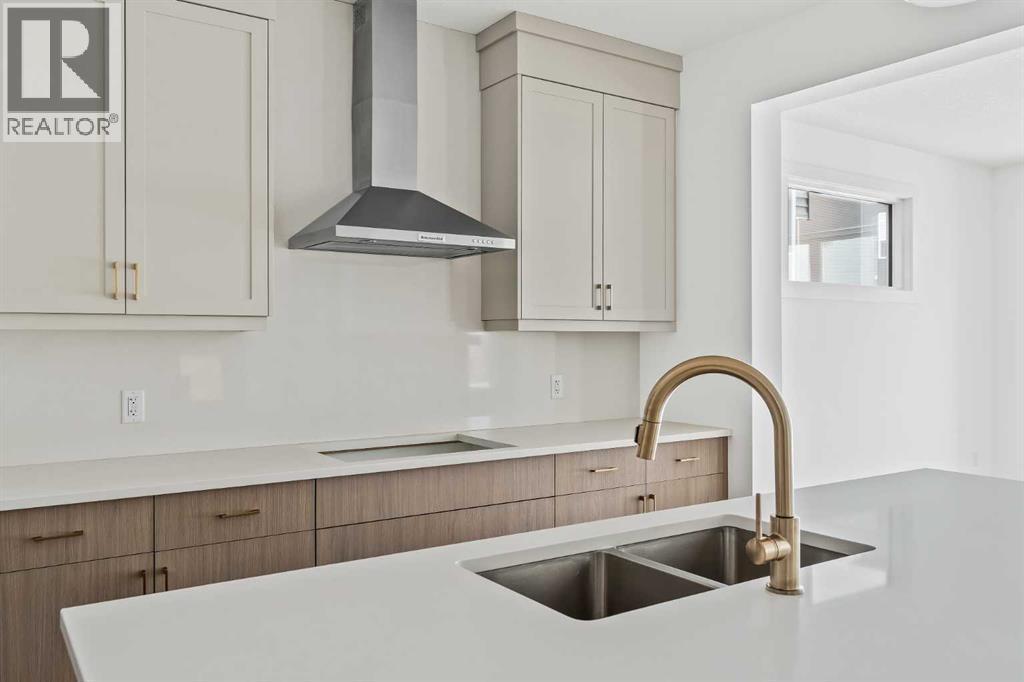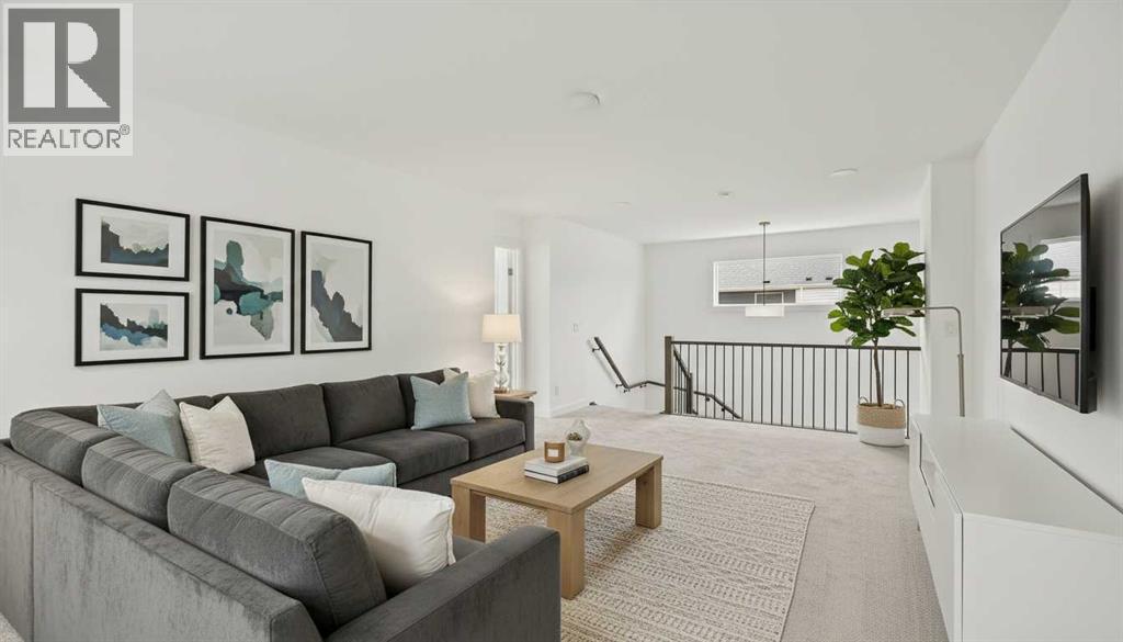 The Columbia 26 is a brand-new home built by Brookfield Residential, ready for immediate possession! Situated on an oversized conventional pie lot (not zero lot) with 4 bedrooms on the upper level and featuring nearly 2,600 square feet of developed living space + a full basement with private side entrance. Featuring 2 living areas, a home office space, 4 bedrooms above grade and 2.5 bathrooms, this home offers the perfect space for a large family! Upon entry a grand foyer provides plenty of space with sight lines from the entryway to the back of the home and main living area. Walls of windows across the back of the home allow natural light to fill the space all day long. The home boasts a central gourmet kitchen with an expansive pantry that has direct access to the mudroom for everyday convenience. The kitchen is complete with a chimney hood fan, built-in wall oven & microwave and a gas cooktop. The kitchen is complete with a large central island and open to the main living and dining space - making it the perfect place to host guests. Warm wood tones and a timeless design palette flow effortlessly throughout the home - creating a space that is beautiful today and will offer exceptional resale value long term. The main level is complete with a private flex space, perfect for a home office with double doors providing added privacy. A central gas fireplace on the main level is the perfect addition for cool winter nights. The main level is complete with 3 closets, an expansive mud room and 2 pc powder room. The upper level has a central bonus room that separates the primary suite from the other 3 bedrooms. The primary suite overlooks the backyard and has a large ensuite with dual sinks, a walk-in shower and soaker tub, in addition to the oversized walk-in closet. Three more large bedrooms, with walk-in closets and double closets, provide ample space for children and a full 5pc bathroom with double sinks and laundry room complete the upper level. The undeveloped baseme nt includes a private side entrance and offers endless possibilities with rough-ins already in place! Located in the new community of Livingston, this home includes Alberta New Home Warranty as well as the builder's warranty, allowing you to purchase this brand-new home with peace of mind. (id:6769)
