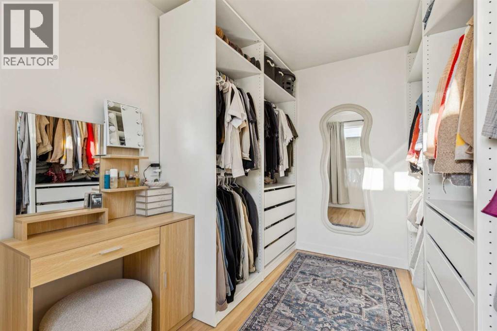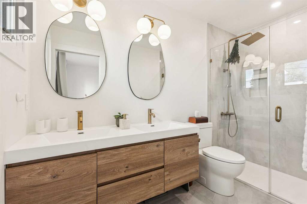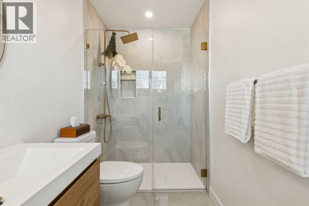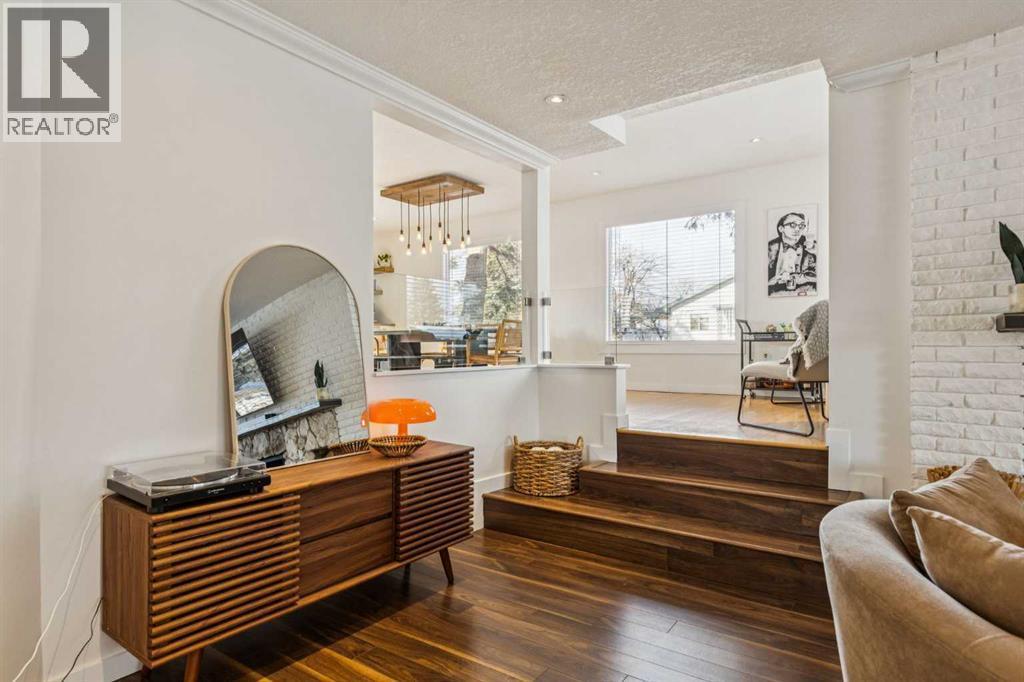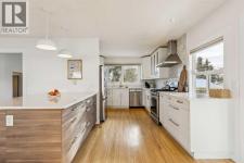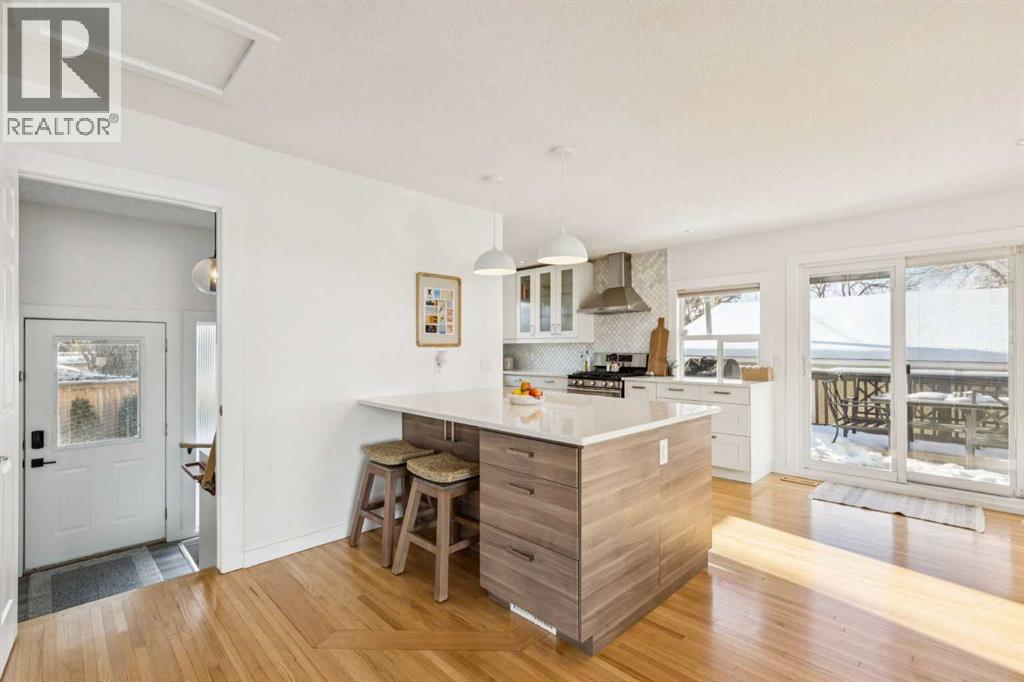 With 2,252 ft² of finished space, this 5-bedroom Glenbrook bungalow offers exceptional flexibility throughout! The living room immediately sets the tone with a bright bay window and a stone wood-burning fireplace that creates a timeless, welcoming atmosphere. The updated kitchen includes quartz countertops, a generous peninsula, a beverage centre, a 5-burner gas stove, a Bosch dishwasher, a garburator, and a large dining room ideal for gatherings. The primary suite is a highlight with a 4-piece ensuite featuring heated floors and a double vanity, along with an oversized walk-in closet complete with a window. A second bedroom, a two-piece bath, and a convenient main floor laundry room complete this level. The lower level offers outstanding versatility with two additional bedrooms, both with blackout cellular blinds, a den, a 4-piece bath with heated floors, and a professionally finished, temperature controlled wine cellar. An additional 850 ft² of bright, open, undeveloped space invites endless imagination, with large windows that provide future potential for a separate suite (subject to approvals), a recreation area, or a custom retreat tailored to your needs. The backyard is beautifully landscaped with aspens and perennials, featuring a large two-tiered deck. The upper deck flows from the kitchen, ideal for relaxed summer evenings and outdoor dining, while the lower composite deck with recessed lighting is accessed from the back door or the primary suite, creating a private outdoor escape. An oversized 22x24 heated double garage adds year-round comfort and valuable storage. Additional updates include two furnaces, air conditioning, a new fridge in 2023, and a new washer and dryer in 2025. With a playground just steps from your yard, the location is exceptional, offering quick access to schools, parks, shopping, transit, and downtown. Be sure to explore the virtual tour to fully appreciate the layout and potential this property offers. (id:6769)