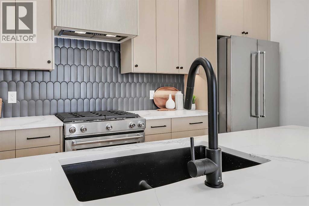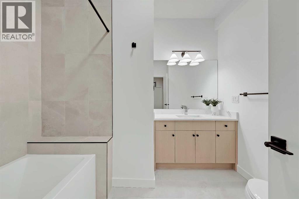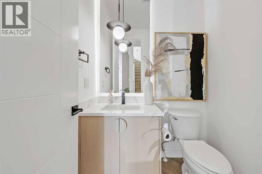 Move into the heart of South Calgary today with this brand-new, walkout townhome that perfectly blends luxury, location, and low-maintenance living! Thoughtfully designed w/ 3 beds, 2.5 baths, and a LEGAL 1 BED SUITE (approved by the city), this is inner-city living without compromise! The interiors strike a perfect balance between modern luxury & livable design. Find high-end finishes that are rare to find at this price point — blonde wood tones, sleek custom cabinetry, and modern & thoughtful tile. Designer hardware, mid-century inspired embellishments, and a clean neutral palette give this space a fresh, elevated vibe. The kitchen is the heart of the home, designed w/ both form and function in mind. A large quartz island anchors the space w/ bar seating for casual meals or morning coffee. There's a full stainless steel appliance package, generous cabinetry, and a stylish backsplash that adds just the right amount of visual interest. It's open to the dining area and spacious living room & balcony, creating the perfect layout for hosting or just relaxing at home. And don’t forget the upscale powder room, complete w/ designer lighting. Upstairs, the primary suite feels like a boutique hotel retreat w/ a PRIVATE BALCONY, a large walk-in closet, and a modern 3-pc ensuite w/ a fully tiled walk-in shower. Two additional bedrooms and a full bathroom give you space for guests, kids, or home office! And yes, there's a laundry room upstairs, tucked conveniently between bedrooms. Downstairs is perfectly set up for a mortgage helper, additional income generator, or the perfect spot for multi-generational living w/ a LEGAL 1-BED SUITE (approved by the city). The modern touches flow into this space as well, w/ an open kitchen & living room space w/ ceiling-height cabinetry, stainless steel appliances, and quartz countertops, complete w/ separate laundry, a great-sized bedroom, and a full 4-pc bathroom. There is a separate entrance to the suite, as well as access from the main h ome to the suite for complete ease of use. The suite also boasts a private deck. The low-maintenance landscaping and a detached garage at the back are a serious bonus in the inner city. The backyard also features upright bike racks & secure CycleSafe lockers for added convenience. You’re tucked into a tree-lined street in South Calgary, but just a short stroll to absolutely everything. Our Daily Brett and South Calgary Pool & library are just at the end of the street, cSPACE King Edward’s arts & community programming is just a few blocks over, and all the everyday amenities in Marda Loop are w/in walking distance — Blush Lane Organic Market, Safeway, Shoppers, fitness studios, and an incredible lineup of restaurants. You’re minutes from 17th Ave’s restaurants & nightlife, and a quick commute to downtown! Whether you're looking for a stylish new home in an established neighbourhood or a long-term rental property w/ strong demand, this unit is an incredible opportunity! *pictures from show suite* (id:6769)