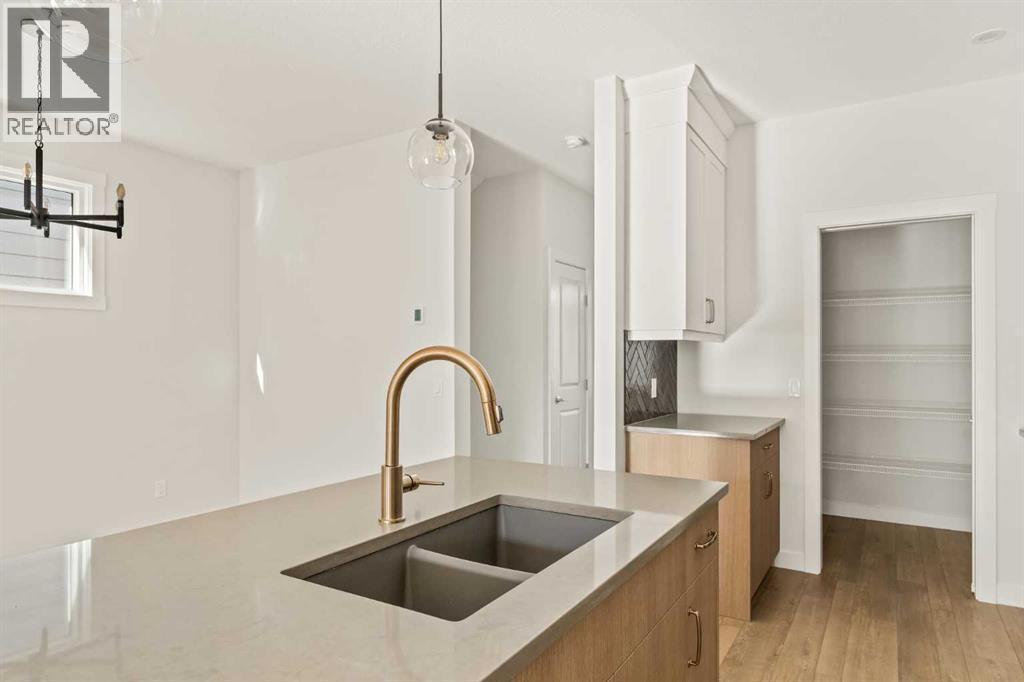 This brand new home, the 'Oxford', is an incredible opportunity in the desirable new community of Rockland Park and ready for immediate possesion! This home is situated on a bright and sunny lot with a southeast facing front yard - allowing natural light to pour through the main level all day long while offering west sun in the backyard during the evening. Featuring 3 bedrooms, 2.5 bathrooms and two living spaces + a home office / flex space and an undeveloped basement with a private side entrance, this property is perfect for investors, multi-generational living or those that want a large family home with space to grow! Built by Brookfield Residential, the Oxford is a stunning home boasting nearly 2,000 square ft. of living space. This open concept main floor has 9 ft. ceilings and extended height cabinets and a large island with a gourmet kitchen package including chimney hood fan, built-in microwave and gas range. The main floor features a large great room with plenty of natural light and a main floor flex space with double doors for added privacy - making it perfect for a work-from-home space! Luxurious and resilient LVP and tile flooring flow throughout the main level, making it perfect for those with children and pets. The upper level features a central bonus room that separates the primary bedroom from secondary rooms. Enjoy the luxury of this large primary suite that spans nearly 13'x13' and is complete with a beautiful ensuite bathroom with dual sinks and a walk-in shower. Two more bedrooms, a full bathroom and a laundry room complete the second level. The basement has direct access via a side entrance and is undeveloped but includes 9' foundation walls and rough-ins for a future suite (subject to City of Calgary approval)! Completing the home is a rear BBQ gas line for daily convenience and a double gravel parking pad with ample space to accommodate a garage if desired in the future. This home is brand new and comes with builder warranty + Alberta New Home Warranty! (id:6769)