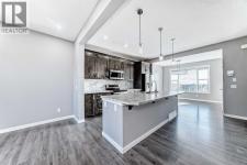 Welcome to this beautiful family home in the heart of Auburn Bay! Beautifully developed living space — plus an additional in the undeveloped basement ready for your personal touch — this freshly painted, open-concept home offers comfort, functionality, and style. At the front, a sunny 19.5-foot porch invites you to enjoy your morning coffee or unwind in the evening. Step inside through the decorative glass door with a transom window that fills the entryway with natural light while maintaining privacy. The spacious living room features a large window and low-maintenance laminate flooring that flows seamlessly through to the kitchen and dining area. The modern kitchen is equipped with stainless steel appliances, plenty of cabinetry, and a massive island perfect for meal prep or casual dining. Under-cabinet and track lighting brighten the workspace, while a pantry provides added storage. Just across from the kitchen is a convenient office or study area — perfect for helping the kids with homework or setting up your own home library. The adjacent dining area enjoys views of the backyard through a large window, and a two-piece powder room is thoughtfully located near the back door for convenience. Upstairs, the primary bedroom is a true retreat with a private five-piece ensuite featuring a soaker tub, stand-up shower, and double vanity, along with a spacious walk-in closet. Two additional bedrooms and an upper-level laundry room make this floor ideal for family living. The lower level, complete with a large egress window, offers the potential to add a fourth bedroom or create a custom-designed living space. Outside, the backyard is ready for entertaining with a freshly painted two-tier deck — perfect for summer barbecues and family gatherings. There’s also ample space for a future double garage accessible from the paved alley. With its family-friendly layout, abundant natural light, and room to grow, this freshly painted Auburn Bay home offers the perfect blend of comfor t, functionality, and modern living. (id:6769)