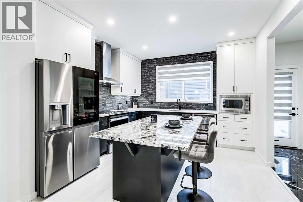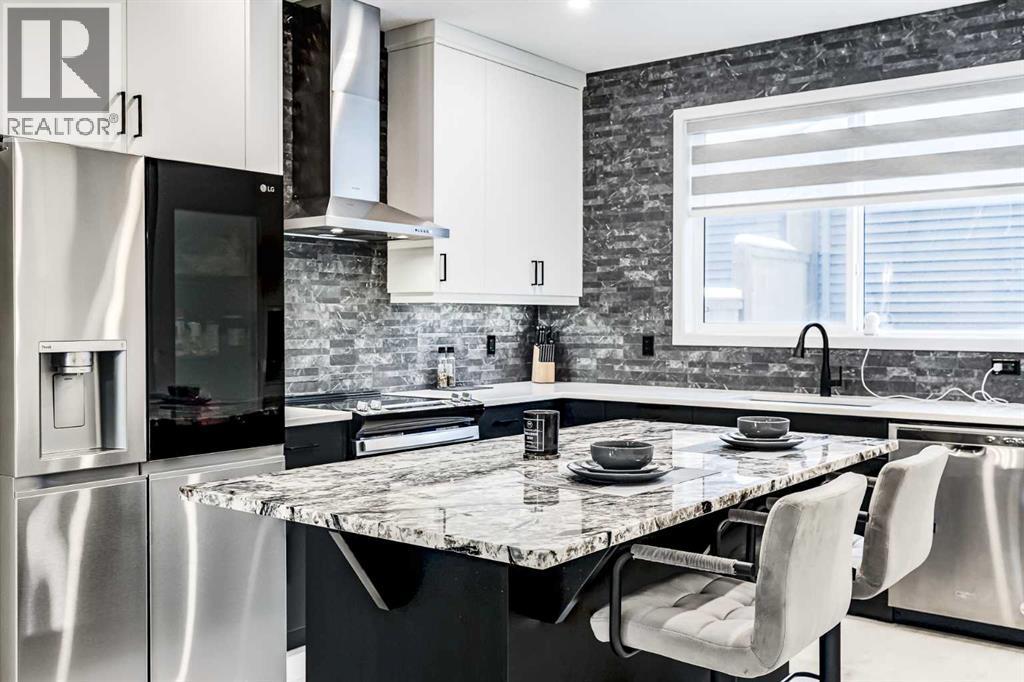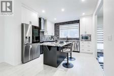 Discover executive living in this stunning Morrison-built home, perfectly positioned in the highly sought-after northwest community of Rockland Park. Ideally located directly across from the community centre and Lodge, this property offers an exceptional lifestyle opportunity.Step inside to a main floor designed for seamless modern living. At the heart of the home is the chef-inspired kitchen, featuring full-height cabinetry with soft-close doors and drawers, a Smart fridge, electric stove, chimney hood fan, dishwasher, and built-in microwave. Premium finishes elevate the space, including Granite countertops on the island, Quartz on the perimeter, and a full-height stone backsplash.The welcoming living room showcases a sleek electric fireplace with contemporary marble looking 24" x 48" tile, an impressive focal point. A bright dining area flows effortlessly into a versatile flex space, ideal for an office, coffee bar, or play area. Additional main-floor highlights include a stylish half bath with a full-height tile backsplash, a functional pantry, and a rear entrance with a built-in bench and closet. The home also offers the convenience of a separate side entrance.The modern railing leads you to the upper level, where a spacious Bonus Room provides the perfect spot for family time or relaxation. The front-facing primary suite feels like a private retreat, featuring floating comfort-height vanities, Quartz counters, and a luxurious tiled shower with a bench and 10mm glass. Two additional bedrooms, a full bathroom, and a dedicated laundry room complete the upper level.Thoughtful upgrades enhance every corner of the home laminate flooring on the main and upper level, carpet in the bedrooms, tile at the entrances, black hardware, a bright skylight upstairs, and Zebra window coverings. The separate entrance and unfinished basement offer a fantastic opportunity to bring your own vision to life.Don’t miss your chance to own this exceptional home in Rockland Park. (id:6769)