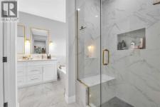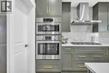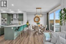 **OPEN HOUSE Dec 14th, 1:00-3:00 PM** 5 Bedrooms Above Grade | 4 Bathrooms | Three Level Design | Backs Onto Green Space | Upgraded Bosch Appliances | 9 ft Ceilings on All Levels | Heated Garage.Welcome to this stunning 2024 built home in Pine Creek, offering more than 2,700 square feet across three beautifully designed levels. Warm, bright, and thoughtfully upgraded, this home blends comfort, style, and modern convenience in a truly welcoming way.The main floor features a sun filled open layout with upgraded LVP flooring and a gorgeous chef’s kitchen equipped with Bosch appliances, a gas cooktop, hood fan, quartz countertops throughout, and a Silgranit upgraded sink. The kitchen flows seamlessly into the bright living and dining areas, all overlooking the peaceful green space behind the home. This level also includes a main floor bedroom and a full four piece bathroom, offering exceptional flexibility for guests, extended family, or a private workspace.The second level offers three spacious bedrooms, each with its own walk in closet, along with a bright bonus room and a full four piece bathroom. One bedroom enjoys its own ensuite, and the laundry room is conveniently located on this floor.The third level is a private retreat featuring the primary bedroom, a relaxing five piece ensuite, a generous walk in closet, a sunny balcony, and an additional flex room perfect for a lounge, workspace, or nursery.This home includes nine foot ceilings on every level, CAT 6 wiring throughout, a water softener, central AC, EV charger rough in, a gas line for backyard barbecues, and a heated garage for year round comfort. The backyard is a standout feature, backing directly onto quiet green space with no neighbors behind.Modern, spacious, and perfectly located in beautiful Pine Creek, this home is ready to welcome its next family. (id:6769)