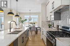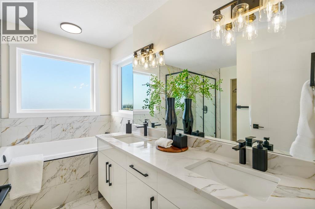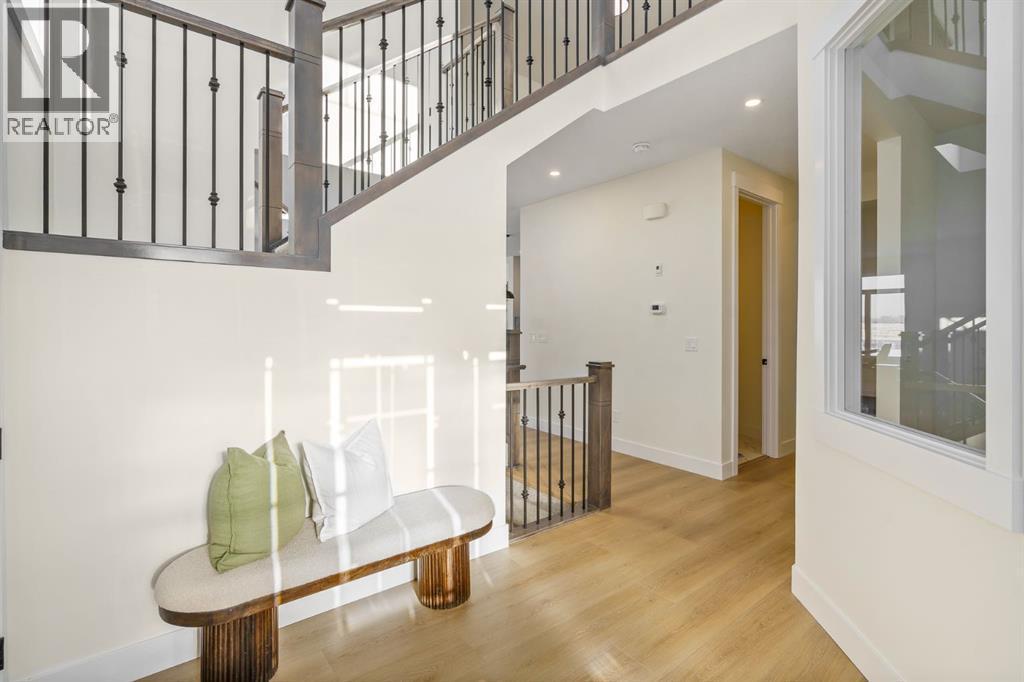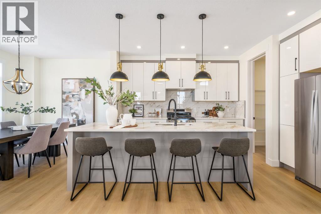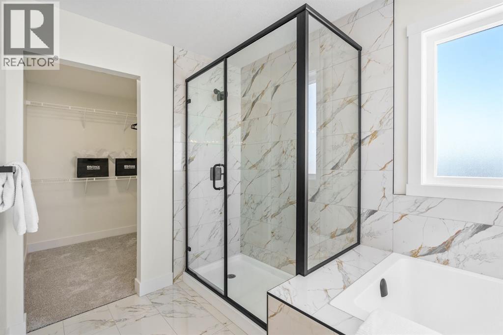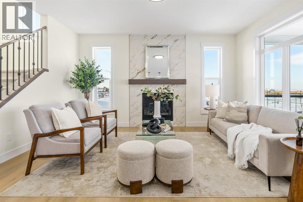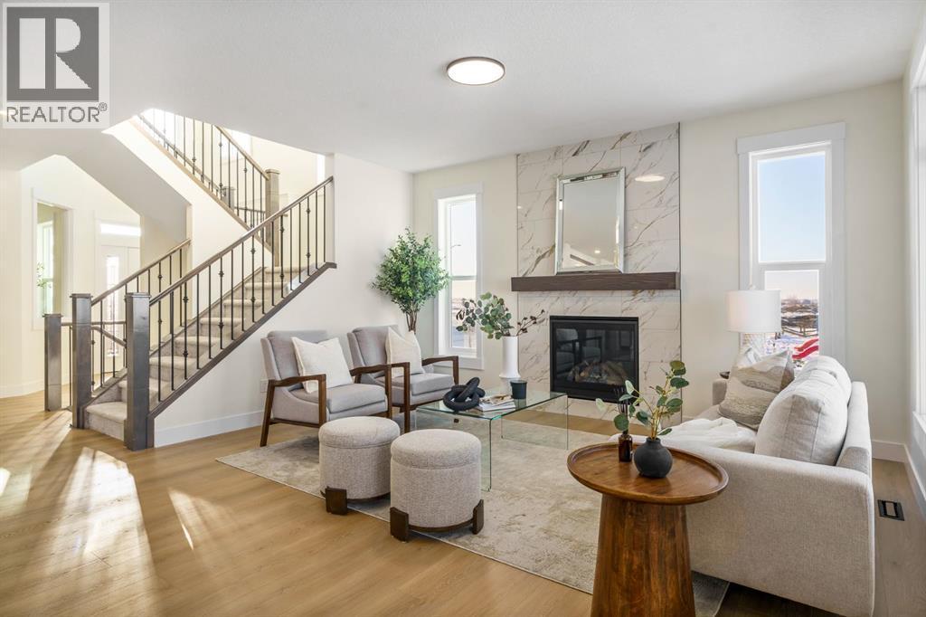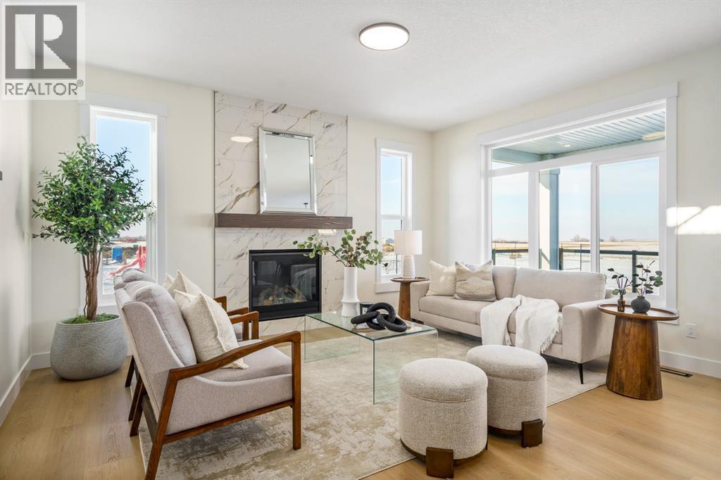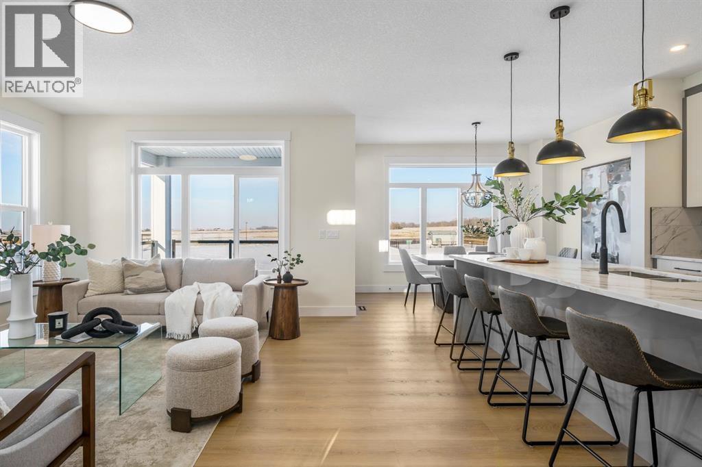 This Christmas, imagine unwrapping a brand-new custom home—one that backs onto endless green space. Welcome to 804 Lakewood Circle — a 2025 custom-built Shayman Homes luxury residence in Strathmore’s emerging lake community, Lakewood. This south-facing 5-bedroom, 3.5-bath home offers 2,200 sq. ft. above grade with a fully developed walkout basement, backing onto green space with unobstructed views of the future lake, pathways, and park.From the moment you arrive, the stone-accented exterior and architectural detailing set an elevated tone. Step through the custom glass-insert door into a bright vaulted foyer with an 8-ft closet and open sightlines that introduce the home’s modern, elegant design. A main-floor office with oversized windows provides an ideal workspace.The open-concept main level features 9-ft ceilings and upgraded 9-inch luxury vinyl plank flooring. The chef’s kitchen is anchored by a 9-ft quartz island with a built-in stainless-steel microwave and dishwasher, complemented by a gas stove with hood fan, stainless-steel fridge with water hookup, undermount sink, quartz counters, and soft-close cabinetry with black hardware. Six-foot windows fill the space with natural light, highlighting the floor-to-ceiling tiled gas fireplace in the living room. The covered upper deck with glass railings and a gas line extends the living space year-round.A custom walk-through pantry with built-in shelving leads to the mudroom, complete with a built-in shoe rack, coat hooks, and full closet—perfect for busy families. Direct access to the oversized double garage, with a gas line rough-in and side entrance, makes winter days and grocery runs effortless.Upstairs, a vaulted bonus room offers a bright, inviting family retreat. The upper laundry room includes tile flooring and a quartz folding counter. The serene primary suite features large windows and a spa-inspired ensuite with a dual quartz vanity, soaking tub, fully tiled shower, separate toilet room, and walk-in cl oset. Two additional spacious bedrooms—one with a walk-in—share a beautifully finished four-piece bathroom.The fully developed walkout basement continues the high-end feel with 9-ft ceilings, luxury vinyl plank flooring, and abundant natural light. A generous family room transitions to a 10-ft wet bar with quartz counters, tile backsplash, under-cabinet lighting, custom cabinetry, and built-in wine storage—an entertainer’s dream. Two bright bedrooms, a full four-piece bath, mechanical room, and storage complete the level. Step outside to a covered concrete patio and landscaped yard with chain-link fencing on the park side and wood privacy fencing along the neighbour’s lot.This is a rare opportunity to own a brand-new, custom lake-community home with luxury finishes, thoughtful design, and exceptional indoor-outdoor living. 804 Lakewood Circle offers the perfect blend of privacy, nature, and modern comfort—ideal for families seeking long-term value in one of Strathmore’s most exciting new neighbourhoods. (id:6769)