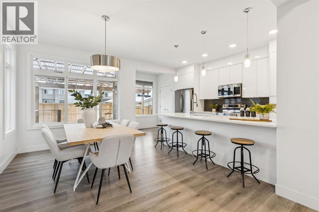Welcome to 584 River Avenue home offering over 2,200 sq. ft. of comfortable living space, UPGRADES, and a location that truly can’t be beat. Walk to the Bow River pathways, SLS Centre, downtown Cochrane, the off-leash dog park, golf course, and multiple parks. Everything you need is just minutes away. The main level offers an OPEN CONCEPT living and dining area, LARGE WINDOWS for an abundance of that natural light and a WHITE KITCHEN. The kitchen includes STAINLESS STEEL appliances, QUARTZ COUNTERS and direct access to the spacious deck/pergola that spans the back of the home in the backyard. With an added heater perfect for seamless indoor/outdoor entertaining. The second floor features three generous bedrooms, including a spacious primary. Enjoy a large WALK IN closet and a 5-piece ENSUITE with dual sinks, SOAKER TUB, and separate shower. Two additional bedrooms, a full 4-piece bathroom, and a conveniently located LAUNDRY room complete the upper level.The fully finished basement includes its own private side entrance, offering great potential for multi-generational living, guests. The space features a full bathroom, apartment-style laundry, cabinetry, and a wet bar. Two storage rooms add even more practicality. This home is truly a place to call home as its close to everything in town! (id:6769)