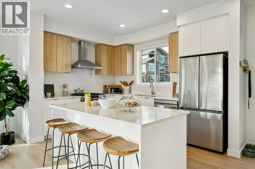 1,463 SQ.FT | 3-BED | 2.5-BATH | 2-CAR ATTACHED GARAGE | END UNIT | EXTRA WINDOWS | LOW CONDO FEES. Welcome to 171 Dieppe Drive SW, an end-unit former showhome in the Billy community by Anthem Properties in the heart of Currie. Large windows on three sides fill the home with natural light, creating a bright, airy main floor with 9' ceilings and an oversized kitchen that flows effortlessly into the living and dining areas. Quartz countertops, durable LVT flooring, and a full appliance package with a gas range and chimney hood fan add to the home’s modern appeal. Enjoy two outdoor spaces—a front patio and an oversized balcony—along with the convenience of air-conditioning rough-in, window coverings throughout, and an upper floor with a full-size washer and dryer, a well-appointed primary suite with walk-in closet and ensuite, and two additional bedrooms. An oversized double attached garage provides exceptional parking and storage. With a nearby dog park, restaurants, quality schools, and quick access to Marda Loop, this home offers comfortable, contemporary living in a highly walkable community. Book your showing today. (id:6769)