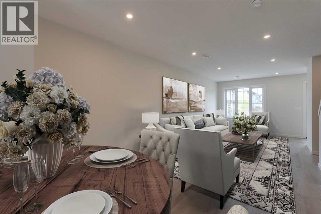 OPEN HOUSE SATURDAY DEC 13 from 1:00PM to 4:00PM. *QUICK POSSESSION* Welcome to the Ambrosia at ZEN Livingston – a stylish, energy-efficient townhome built by a NET ZERO builder! Offering 1,095 sq ft of thoughtfully designed living space, this 2 BED, 2.5 bath home features TRIPLE-PANE windows, advanced insulation, and a rough-in for solar panels – all contributing to lower utility bills and year-round comfort. The OPEN CONCEPT main floor showcases Nuova Luxury VINYL PLANK flooring, pot lights with knock-down ceilings, and a BRIGHT LIVING AND DINING area that flows into your WEST FACING BACKYARD that is FULLY FENCED, perfect for those with kids, pets or wanting to enjoy some privacy — complete with BBQ GAS LINE, landscaping, and irrigation. The modern kitchen includes dark diavik QUARTZ COUNTERTOPS and a 6-piece Whirlpool appliance package. Upstairs, you'll find two spacious bedrooms including a primary suite with an ensuite bathroom, upstairs laundry and an additional 4-pc bath. Enjoy HARDIE BOARD siding (hail/fire-resistant), and be part of a vibrant community just steps from the Livingston Hub with splash park, rink, courts & more! Quick access to Stoney Trail (3 min), YYC Airport (13 min), and CrossIron Mills (11 min). AIRBNB friendly! *2ND PARKING STALL may be available for purchase* Some photos are representative. Visit the showhome at 56 Livingston Parade NE for more details! (id:6769)