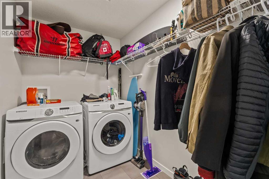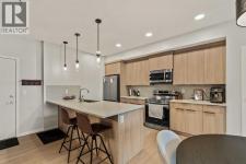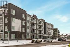 Welcome to this beautiful property that features nearly 900 square feet of living space and is situated in the new desirable community of Carrington. This 2 bedroom, 2 bathroom condo features low condo fees, offering a great opportunity for first-time buyers or investors. Resilient luxury vinyl plank flooring flows throughout the open-concept main living area and into each bedroom. The 9-foot ceilings and large windows allow natural light to flood the space and the light and neutral colour scheme offer a warm and inviting ambiance. The kitchen offers quartz countertops, a large peninsula with a breakfast bar for additional seating, stainless steel appliances, and a pantry for extra storage. The kitchen overlooks the living and dining areas - making this the perfect space for entertaining friends and family. The large primary bedroom can comfortably fit a king-sized bed and offers a walk-in closet and a 3-piece ensuite bathroom. The secondary bedroom is perfect for a guest bedroom or an office for working from home. Step outside on to your spacious covered balcony that offers plenty of room for patio furniture and a gas hook-up for your barbeque. A 4-piece bathroom and a large storage room with in-suite laundry complete this unit. Additional features include air conditioning for those warmer summer days and secure titled underground parking to keep your vehicle safe and out of the elements. Located in the heart of Carrington, this property offers a great walkable location and is just across the street from the amenity-rich Carrington Plaza that has shopping, restaurants, and cafes. Daily commuting is easy with nearby public transit stops and quick access to Stoney Trail. Don’t miss out on this incredible opportunity that offers excellent value! (id:6769)