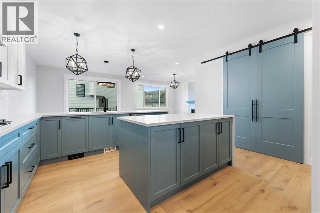 Welcome to a home where style meets substance in perfect harmony. This brand-new residence in Pinnacle Estates at Sunset Ridge offers a masterful blend of luxury, functionality, and thoughtful design—crafted to elevate your everyday living.On the main floor, you’re welcomed by rich hardwood flooring, soaring 9’ ceilings, and 8’ doors that add to the home’s sense of scale and sophistication. At the heart of the home, the chef-inspired kitchen showcases custom cabinetry, quartz countertops with double waterfall edges, and a full suite of premium appliances including a 30” gas cooktop, built-in wall oven and microwave, 36” fridge-freezer, and a dishwasher. A 6” drop ceiling defines the island with a flushed eating bar, making it both a design focal point and a hub for gathering.The walk-through pantry with MDF shelving flows seamlessly into the open-to-above foyer, with direct access to the double attached garage and a smartly designed mudroom complete with built-in bench and hooks.The family room, anchored by a custom gas fireplace, invites comfort and conversation, while a versatile flex room with barn door accents offers the perfect space for a home office, playroom, or creative studio. Outside, a spacious deck with gas BBQ hookup sets the scene for effortless entertaining.Upstairs, a vaulted ceiling in the bonus room enhances the spacious feel, creating a cozy yet dramatic space for relaxing or hosting movie nights. The primary suite is your private escape—complete with a tray ceiling, walk-in closet, and a spa-like ensuite featuring a double vanity, jetted soaker tub, and a glass-enclosed shower.Two additional bedrooms share a well-appointed 4-piece bathroom, while a dedicated laundry room with sink and cabinetry adds everyday convenience.The fully finished basement is designed with versatility in mind. With a separate side entrance, 9' ceilings, two large bedrooms, a 4-piece bathroom, and a family room with wet bar, it's the ideal setup for multigener ational living, guests, or game-day entertaining.Every inch of this home has been crafted with attention to detail, blending modern aesthetics with purposeful design. If you're seeking elevated living in one of Cochrane’s most desirable communities—this is the one. (id:6769)