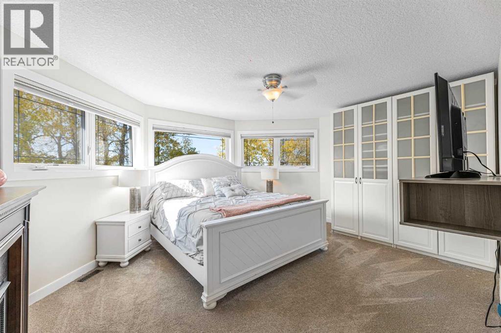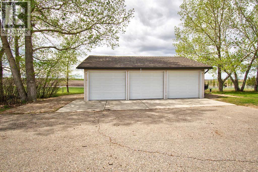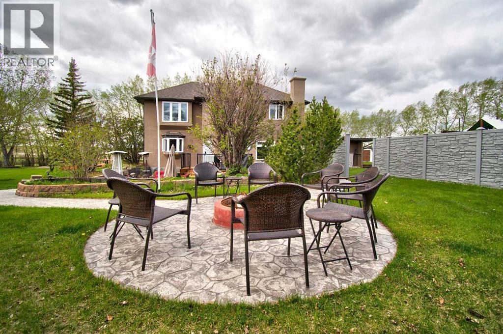 Welcome to Airdrie - country living with city convenience. As you arrive, you’ll be greeted by a stunning two-story home on 3.2 acres within city limits. The property includes a triple detached garage, providing ample space for your vehicles and hobbies, in addition to the double attached garage for everyday convenience. Inside, the main floor features a traditional layout, including a formal living room and dining room. The heart of this home is undoubtedly the custom kitchen, adorned with solid wood cabinets, granite countertops, and top-of-the-line stainless steel appliances. A walk-in pantry ensures you have plenty of storage. Enjoy your morning coffee in the cozy breakfast nook, overlooking the gorgeous backyard. Adjacent to the kitchen, a sunken living room invites you to unwind by the gas fireplace, creating a warm and inviting atmosphere. Off the living room is a home office that could also function as an additional bedroom, along with a convenient two-piece bathroom and a custom mudroom with a sink, situated just off the garage. Up the curved staircase with skylights above, you’ll discover four bedrooms, including the primary bedroom with a walk-in closet and a separate wardrobe and hidden storage. The five-piece bathroom is shared for upstairs while you get your own personal ensuite with a corner shower and a jetted tub. The fully finished basement features a spacious entertainment rec room equipped with a wet bar and ample cabinet space. It’s the perfect spot for family movie nights and hosting friends. Additionally, you’ll find a well-appointed four-piece bathroom, a cold room, and a hobby room, plus a SEPERATE ENTRY COVERED WALK UP that gives the basement easy and private access. Now, let’s talk about the outdoor space. Your backyard is complete with a playground, fire pit area, and an entertainment zone where you can host barbecues and soak in your hot tub. The mature trees provide natural privacy, and there’s plenty of storage for your RV, boats, and all your toys. Don’t miss the opportunity to make this extraordinary property your forever home! (id:6769)